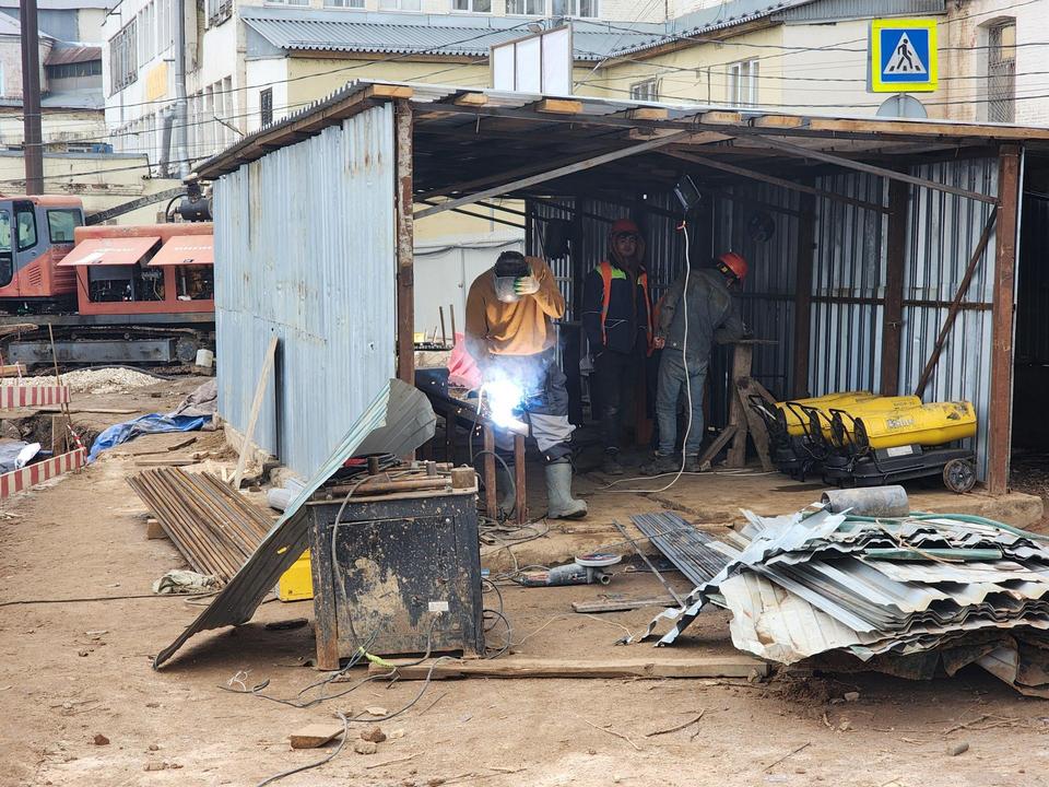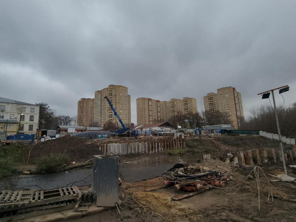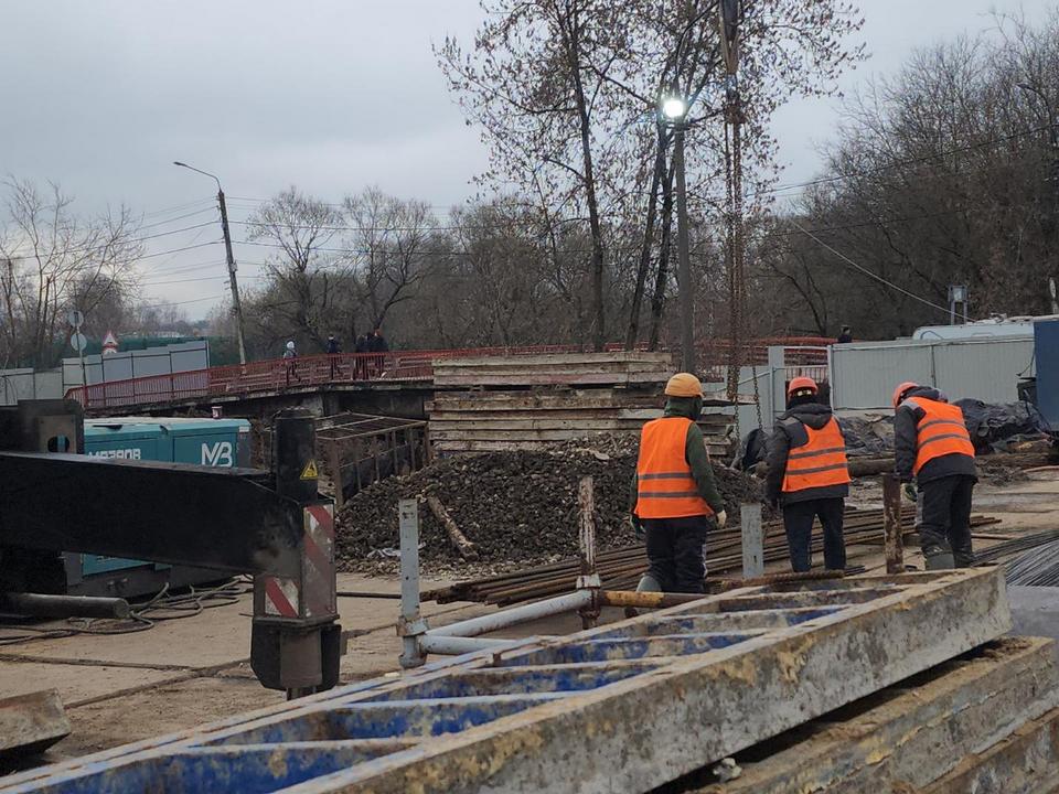 Сейчас рабочие перекладывают инженерные коммуникации и устанавливают ливневую канализацию. Параллельно они ведут монолитные работы и возводят опоры моста. Ежедневно на площадке работают 35 человек, задействовано десять единиц техники.