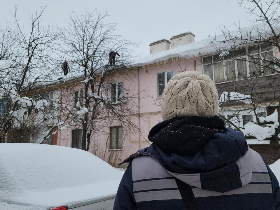 Специалисты со страховкой взялись за самые сложные объекты – дома со скатными кровлями без снегозадержателей. Работа считается очень опасной: снежная масса на таких крышах может сорваться лавиной.