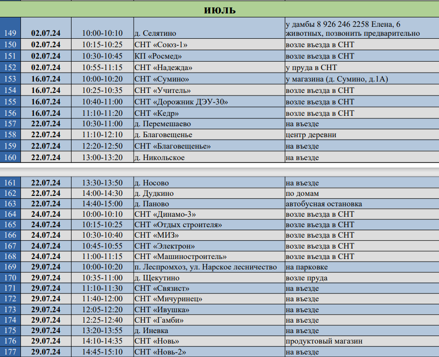 В назначенные даты в ниже приведенных местах размещается мобильный пункт государственной ветеринарной службы, где проводится бесплатная вакцинация от бешенства, а также можно сделать платные прививки от инфекционных и особо опасных болезней животных по государственной цене.