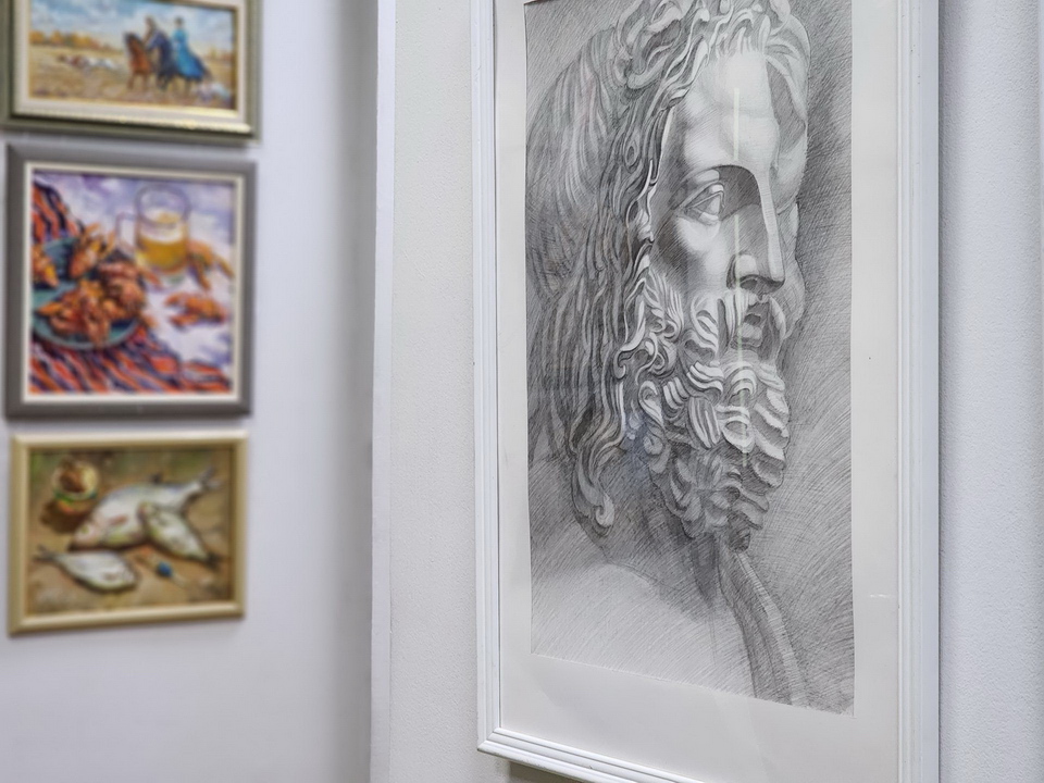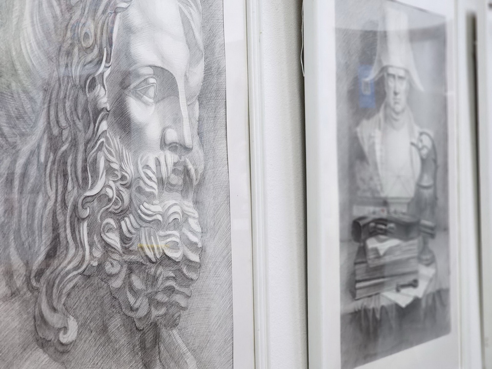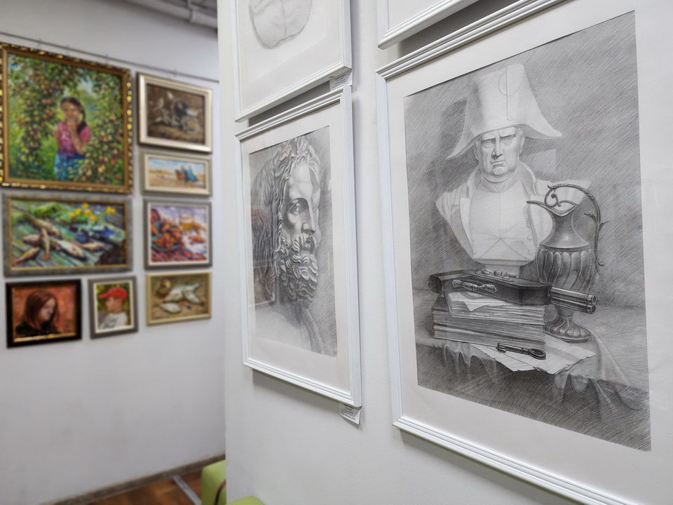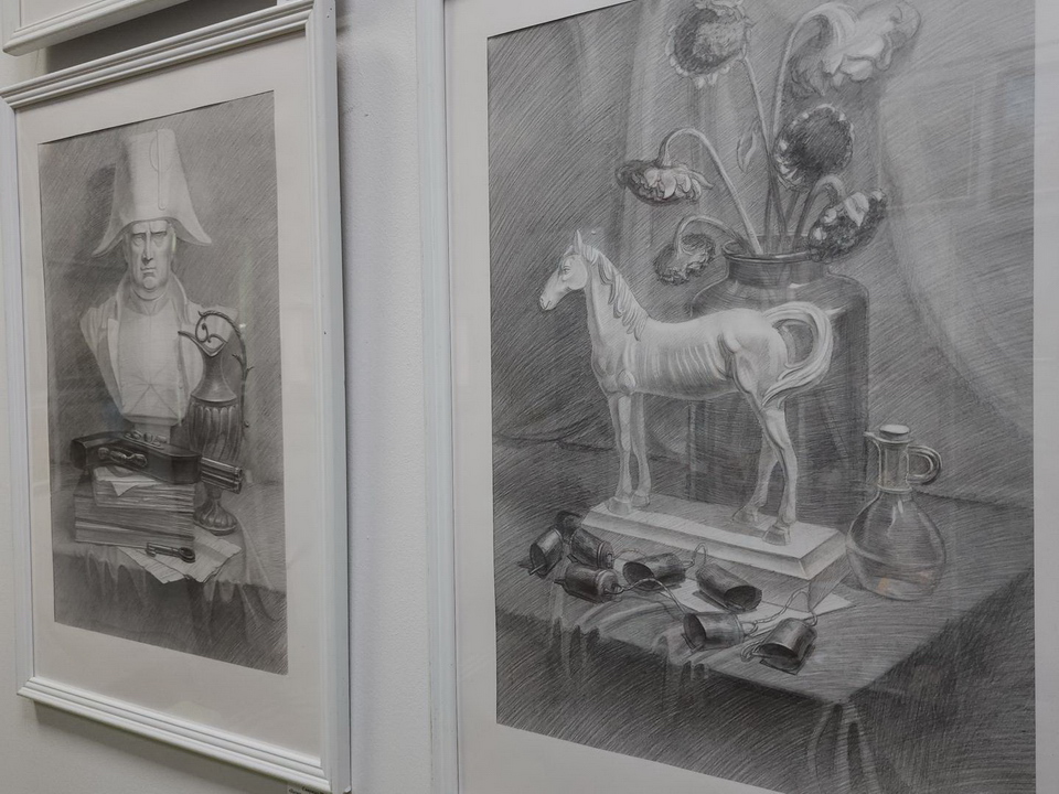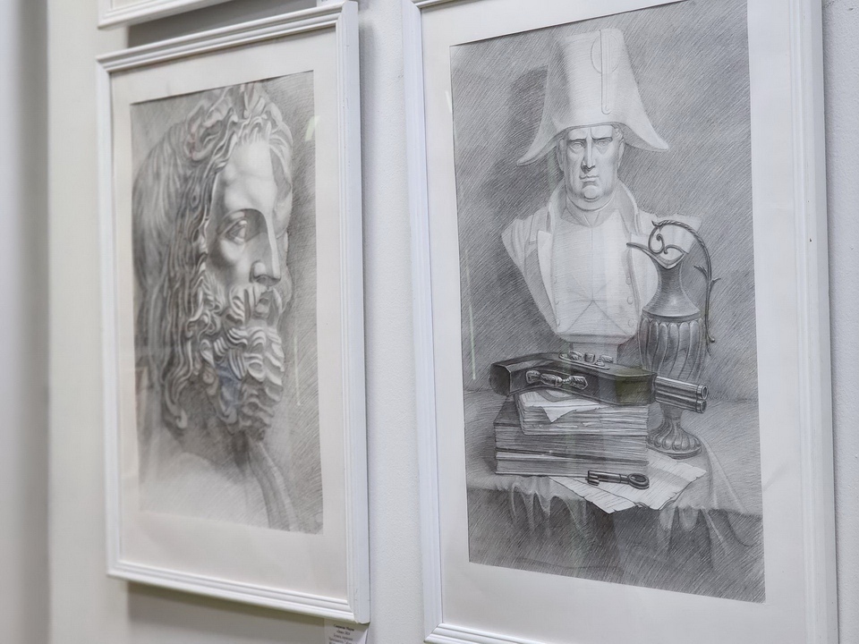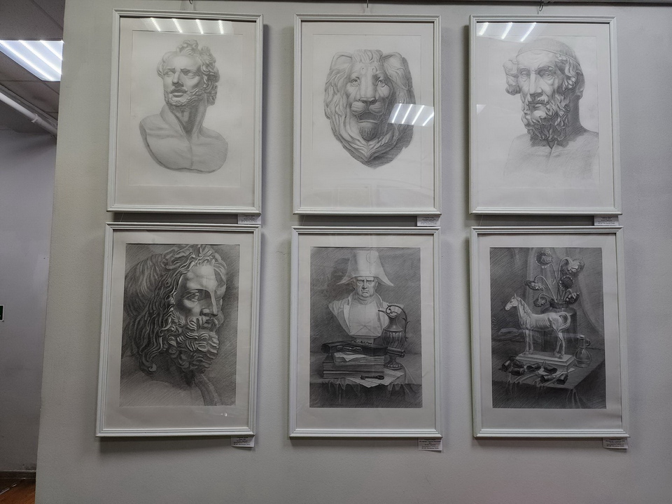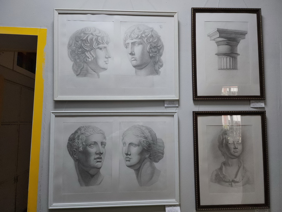 Первая часть выставки посвящена графике и представляет собой учебные задания, выполненные ученицей под руководством Алексея Саблина. Посетители увидят на полотнах античные бюсты, реалистичные гипсовые головы и разнообразные натюрморты.