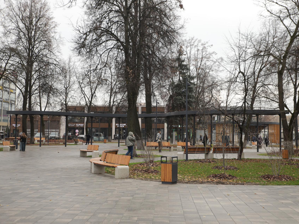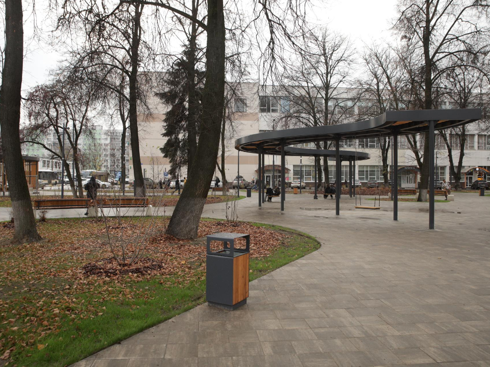 Пространство стало более просторным и светлым. В ходе работ было заменено покрытие пешеходных дорожек, высажены новые газоны и кустарники. Для безопасности и комфорта посетителей установлены современные системы освещения и видеонаблюдения.