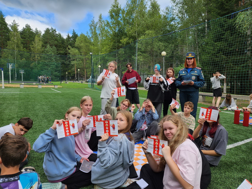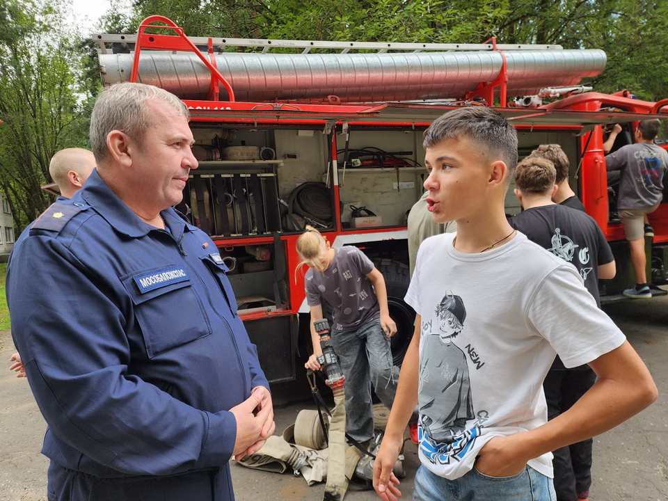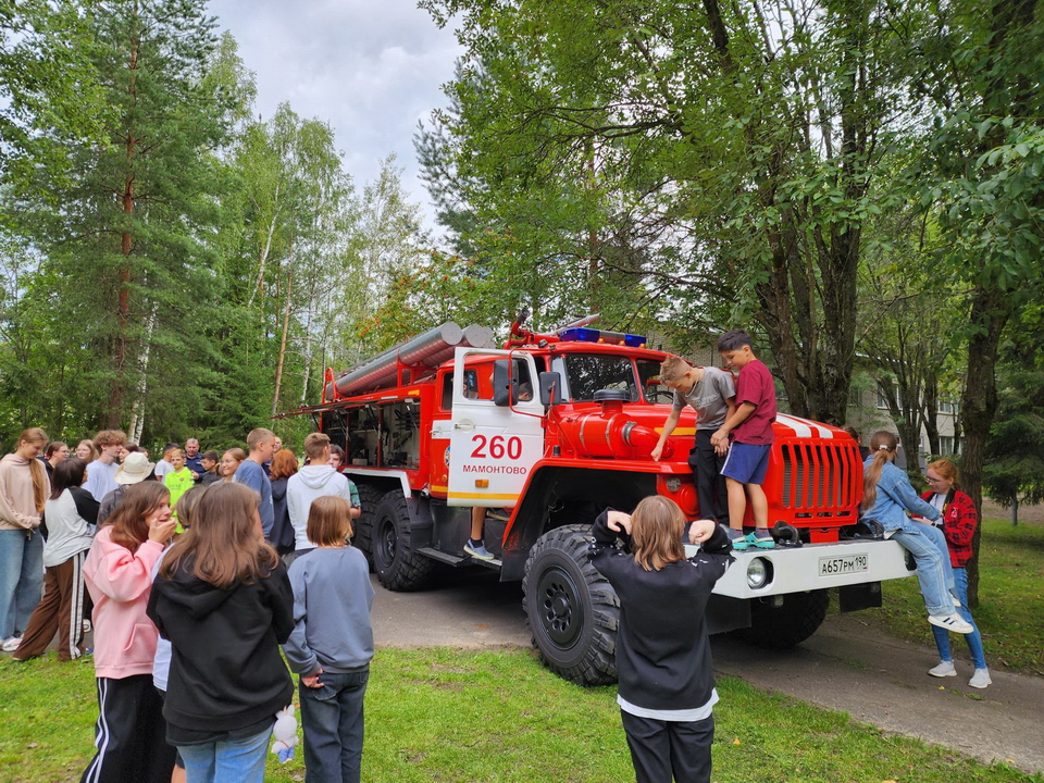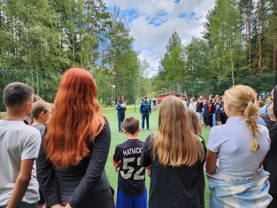 Сотрудники МЧС проверили готовность детей и персонала одного из лагерей летнего отдыха в деревне Калитино к эвакуации во время пожара. По сигналу тревоги вожатые оперативно вывели детей из лагеря.