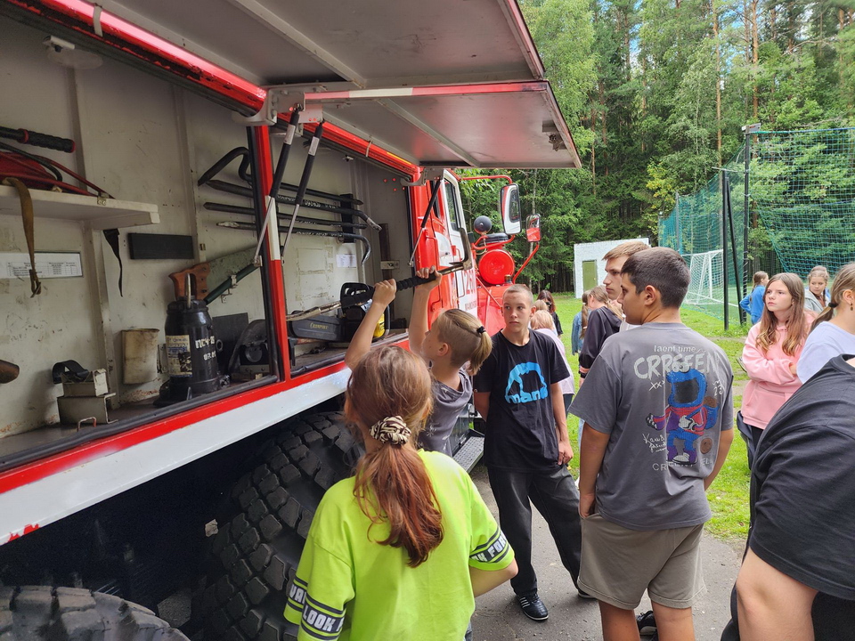 Кроме того, детям показали снаряжение пожарной машины и разрешили посидеть в кабине.