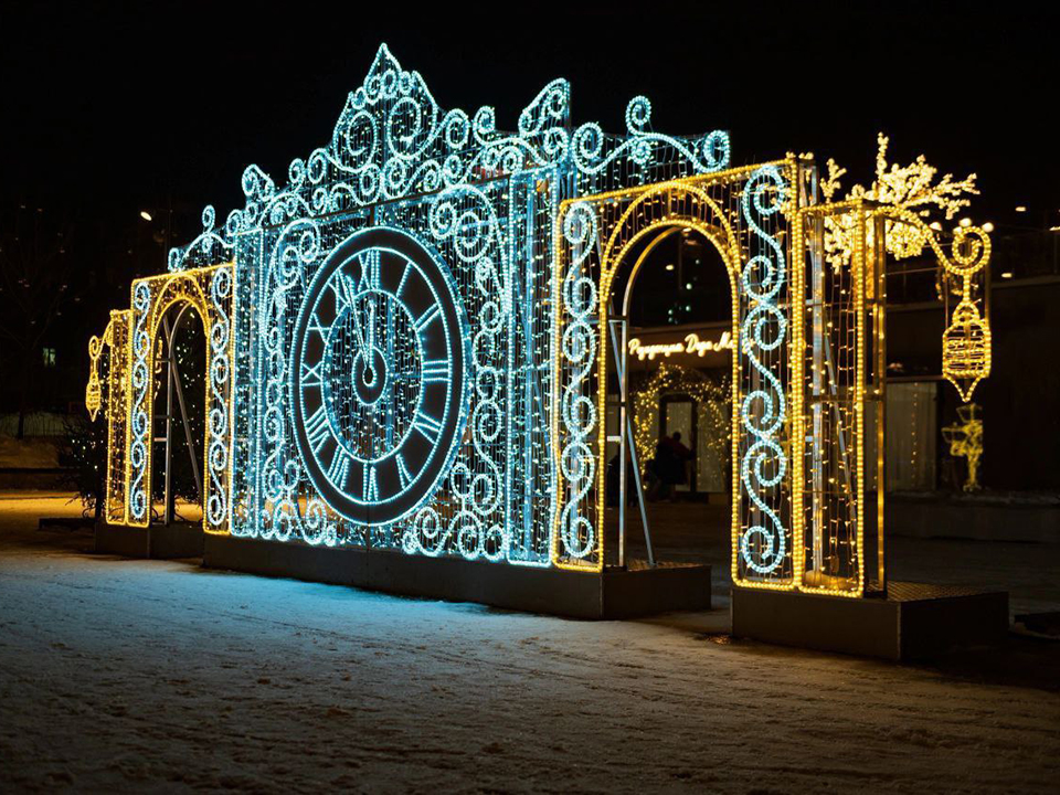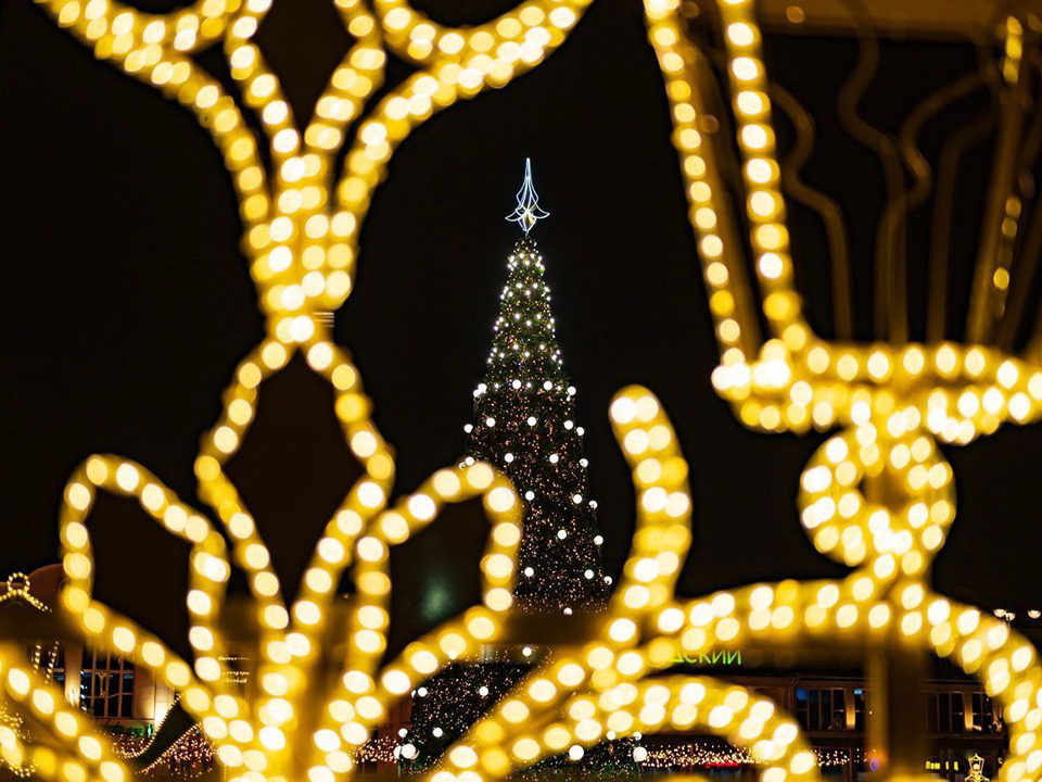 Самая эффектная новогодняя иллюминация и главная инсталляция установлены на Фонтанной площади в самом сердце Ногинска. Елку-гигант высотой почти двадцать метров украсили гирляндами, вокруг разместили декорации и расставляют яркие элементы композиции «Богородский бал».