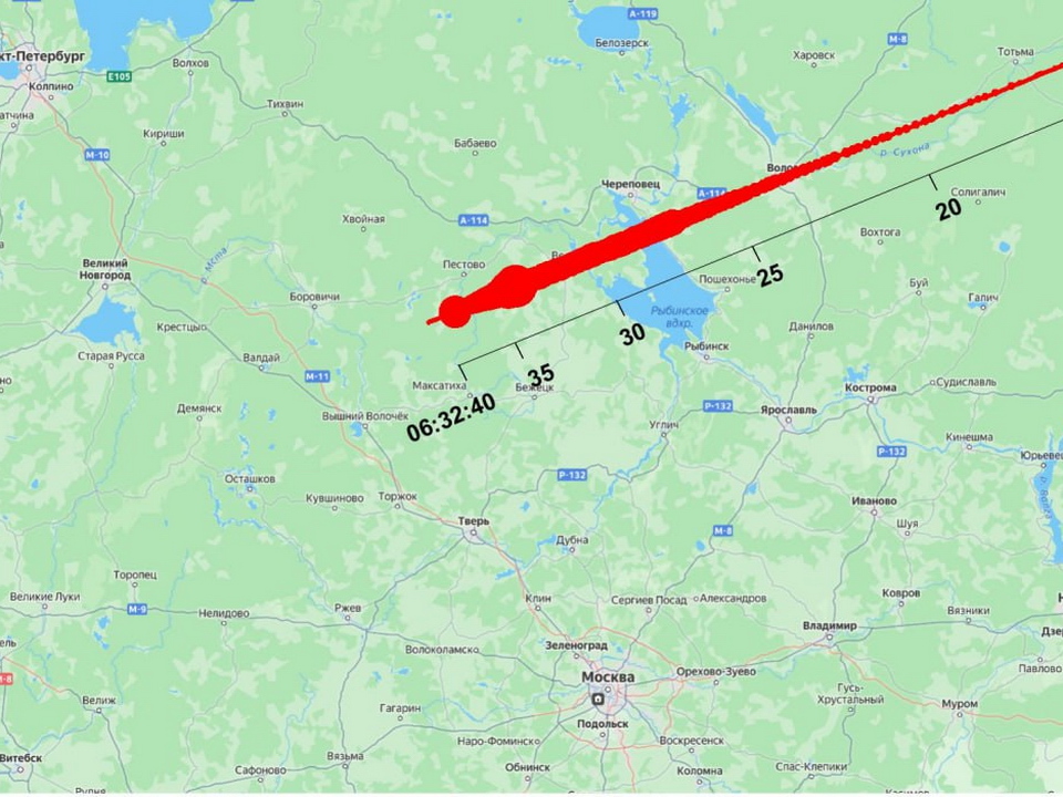 «Фрагменты выпали в окрестностях населенных пунктов Боровичи, Максатиха, Пестово, Удомля. Часть фрагментов могла долететь до трассы М-11 Москва-Санкт-Петербург. По полученным данным, в атмосферу Земли вошел и был разрушен в ней железный или железно-каменный метеорит размером около метра», — отметили специалисты.