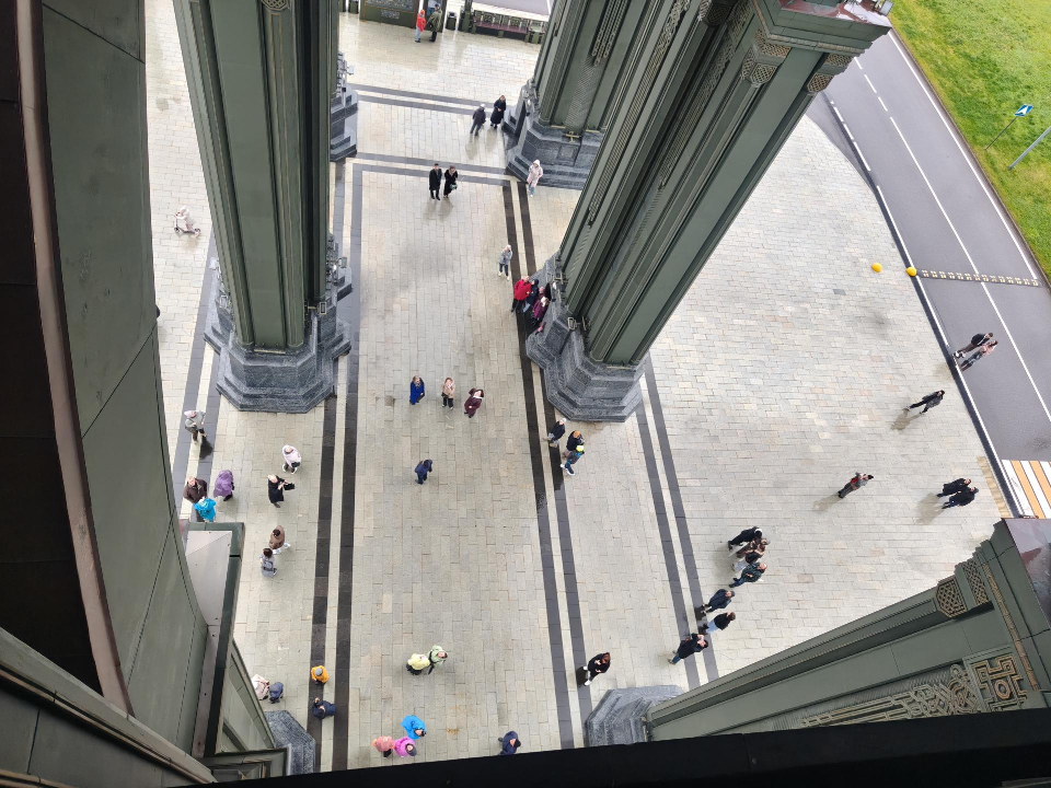 «Русский карильон» — это не только название парадных ворот, ведущих к Главному храму ВС РФ, но и уникальный механический музыкальный инструмент, состоящий из 78 колоколов. Вес самого большого колокола составляет 22 тонны, а самого маленького — 5 кг. Общий вес инструмента, расположенного на Соборной площади, достигает около 120 тонн, что делает его самым крупным карильоном в мире.
