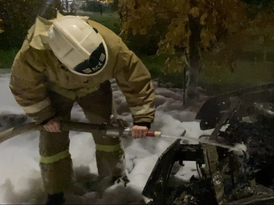 Пожарные приехали быстро, но машина уже горела открытым пламенем. Транспорт потушили пеной из нескольких рукавов, исключив распространение огня по парковке. Жертв и пострадавших нет.