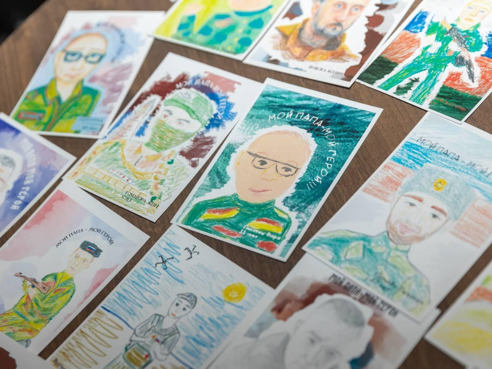 Особую часть груза составляют трогательные послания от детей. Школьники нарисовали своих отцов в рамках акции «Мой папа — мой герой», а воспитанники Школы креативных индустрий с помощью современных технологий превратили эти рисунки в настоящие открытки, которые теперь отправятся на передовую.