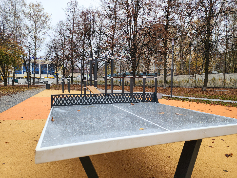 В сквере установили новые скамейки и уютные скамейки-качели, оборудовали воркаут-зону с теннисным столом.