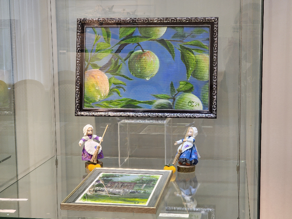 В экспозиции представлены работы воспитанников и преподавателей студии живописи «Рисование для души».