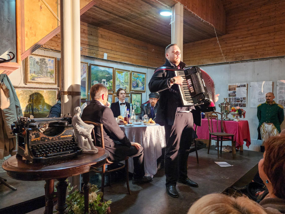 На творческом вечере прозвучали отрывки произведений писателей, а также песни той эпохи «Рабочая Марсельеза», «Дубинушка», «Очи черные» и другие.