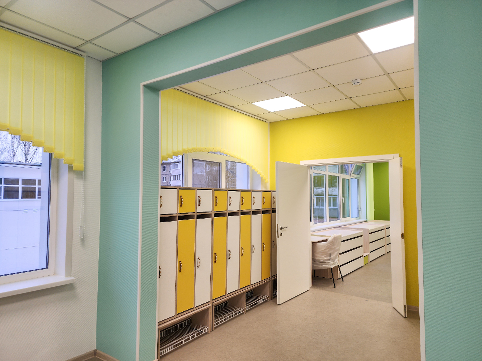 После ремонта сад буквально получил вторую жизнь. Здесь обустроили новую кровлю и фасад, заменили инженерные коммуникации, выполнили отделочные работы и благоустройство, в том числе организовали уличную площадку для прогулок ясельной группы в ветреную погоду.