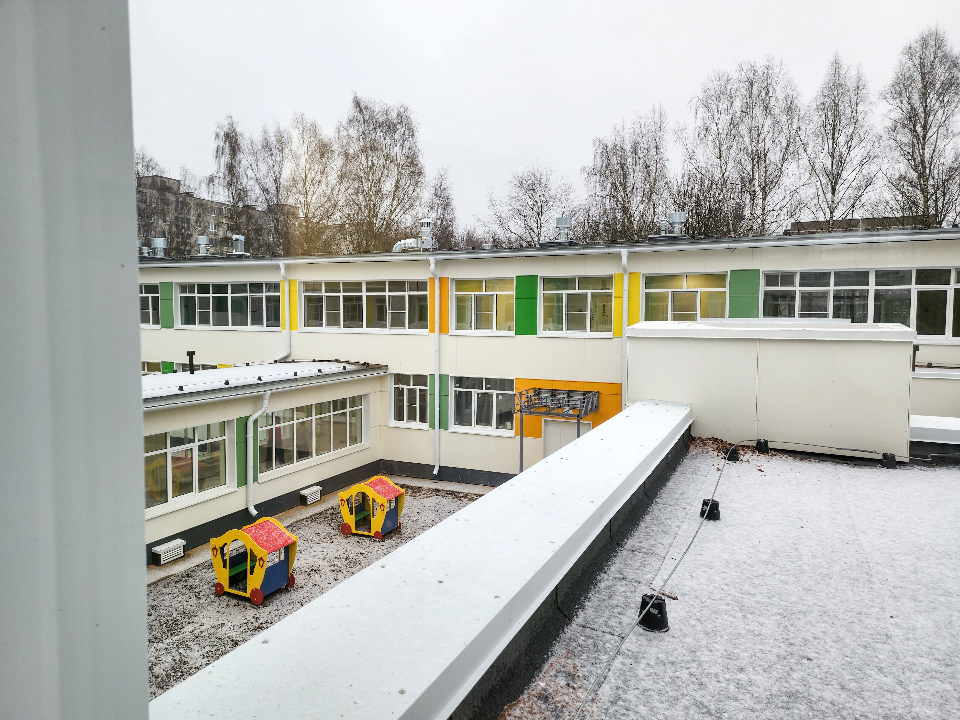По словам Анны Шумилиной, сейчас строители занимаются пусконаладкой слаботочных систем, в том числе пожарной сигнализации, установкой лестничных перил, сборкой мебели в группах и оборудования в пищеблоке. Им также осталось смонтировать козырьки над входами и систему уличного освещения.