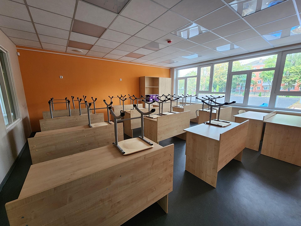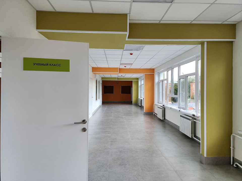 Школа площадью почти 4 тысячи кв. м получила обновленный фасад, кровлю, инженерные системы и сантехнику. Внутри провели ремонт помещений, оснастили учебные классы, спортивный зал и пищеблок современной мебелью и оборудованием. Территорию возле здания также благоустроили.