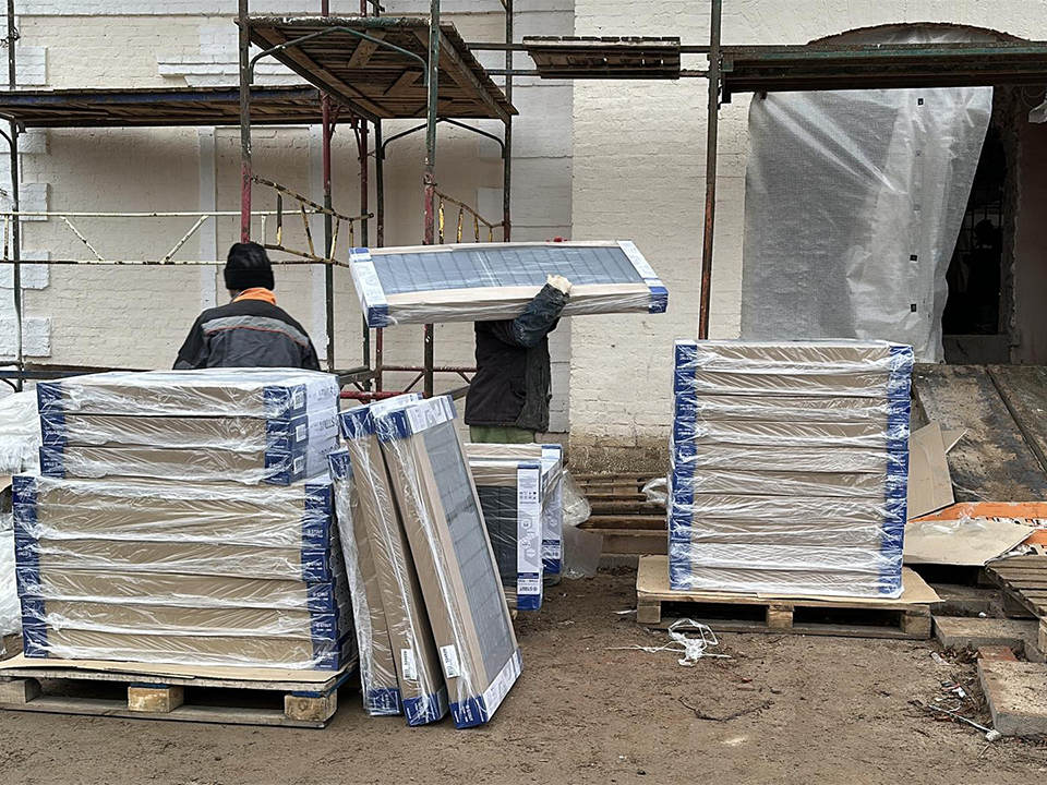 До 20 декабря команда приведет в порядок территорию — уложит тротуарную плитку, установит бордюры и заасфальтирует въезд. На объект уже доставили алюминиевые витражные окна — строители приступят к их монтажу в самые ближайшие дни, после чего перейдут к откосам.