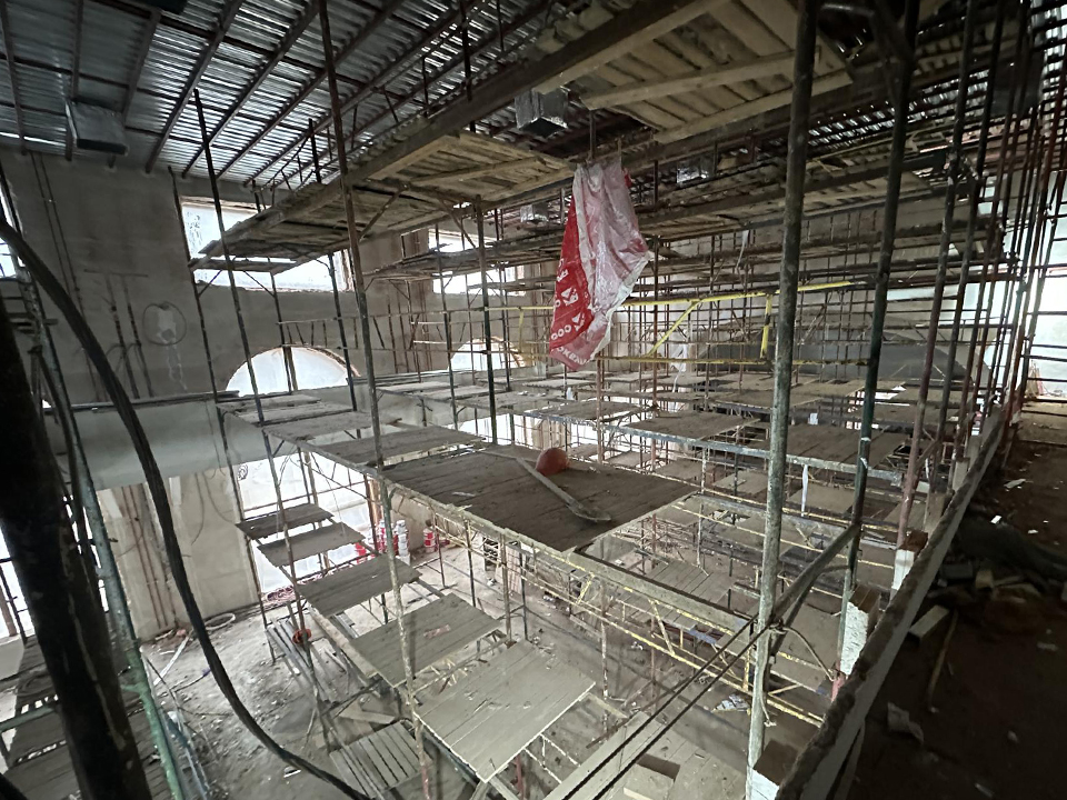 Внутри здания, построенного 100 лет назад работы ведутся почти без остановки. На площадке задействовано около 30 специалистов и экскаватор-погрузчик.