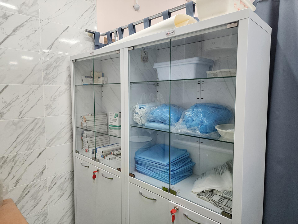 Рабочие установили здесь кушетки, тумбочки, шкафы, сушилку для медицинских изделий, сантехнику и современные сплит-системы.