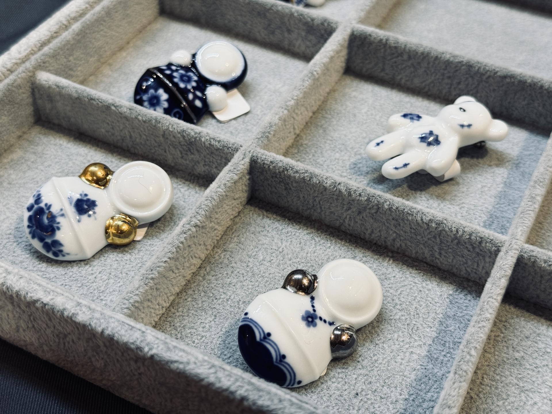 Коллекция, сразу привлекшая внимание гостей, поражает своей исключительностью. Было создано всего 74 изделия, и каждое из них является единственным в своем роде. Знакомые с детства образы — мишки, неваляшки, коники — выполнены из фарфора вручную дизайнером Валерией Романовой.
