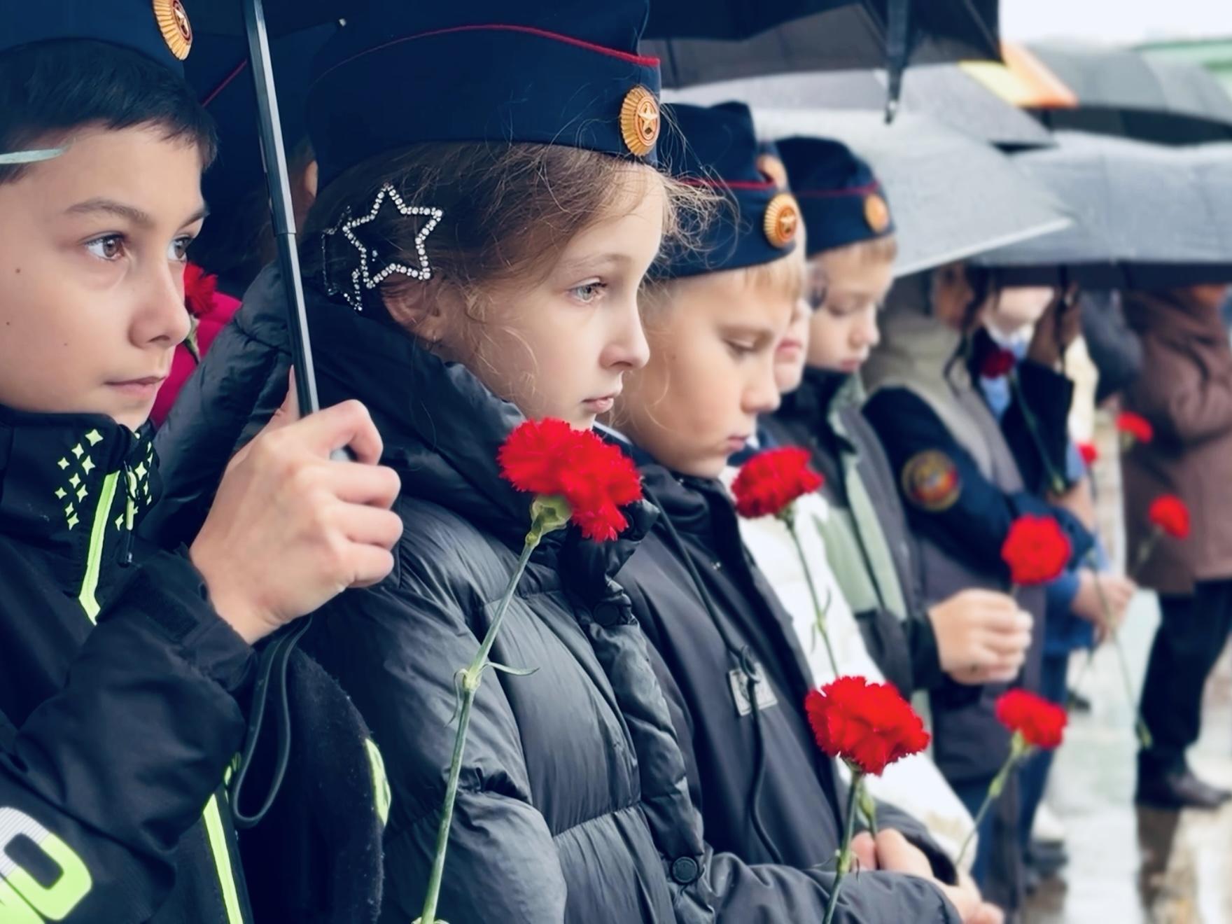 Право открыть памятный знак было доверено вдове героя Марине Ландыревой и кадетам школы. Под звуки метронома участники церемонии почтили память воина минутой молчания и возложили к мемориалу алые гвоздики.