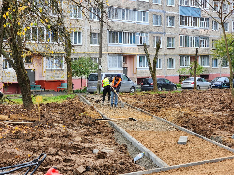 Специалисты выравнивают грунт в тех местах, где летом заменяли коммуникации. А на подходе к учебному заведению уже установили новые бордюры и подготовили дорожки к асфальтированию и укладке плитки.
