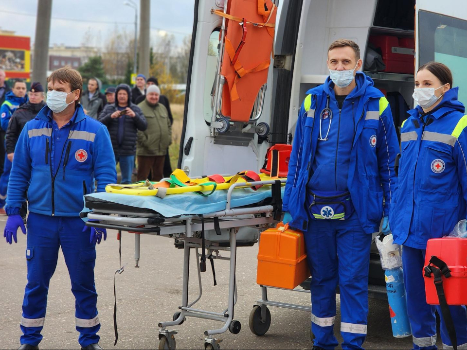 Мужчину, получившего «травмы», эвакуировали на носилках и передали фельдшерам скорой помощи. В это время пожарные потушили условное возгорание, а коммунальщики и энергетики быстро вернули электричество и тепло в дома.
