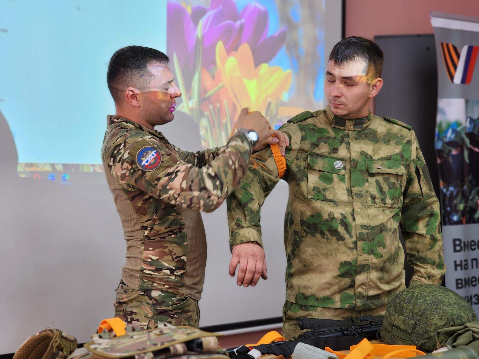 Также ветераны СВО рассказали о тактической медицине. Показали жгуты, специальные салфетки и индивидуальные перевязочные пакеты, которые помогают сохранить жизнь раненым солдатам.