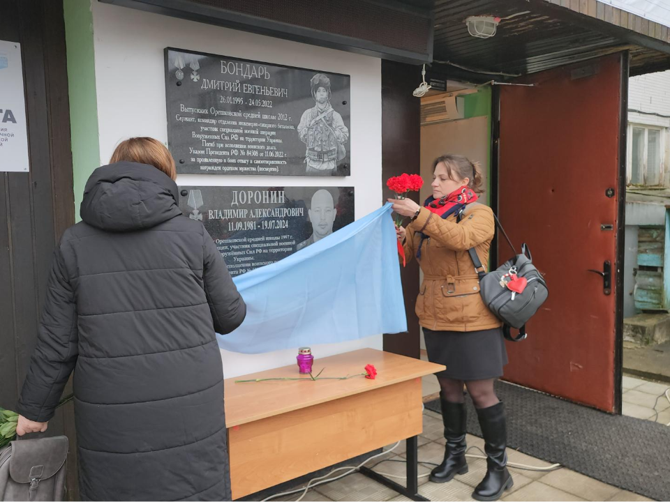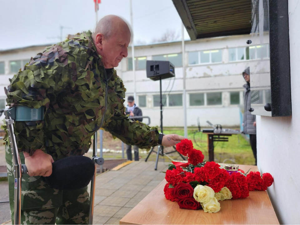 На фасаде его родной школы установили именную мемориальную доску. Почетное право открыть ее предоставили маме и жене бойца.