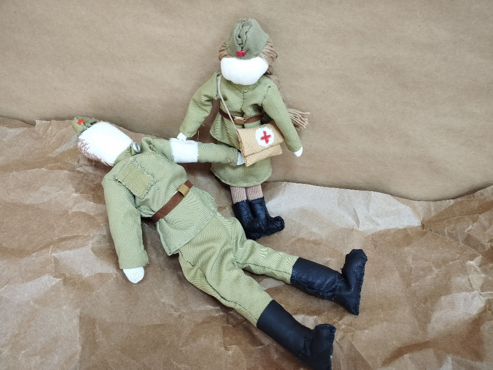 Авторы работы не только создали кукол в традиционных русских народных костюмах, но и сделали мини-сценки с их участием. Так, одна из работ получила название «Слава воину-победителю». Сюжет «картины» связан с победой в Великой Отечественной войне — семья встречает фронтовика.