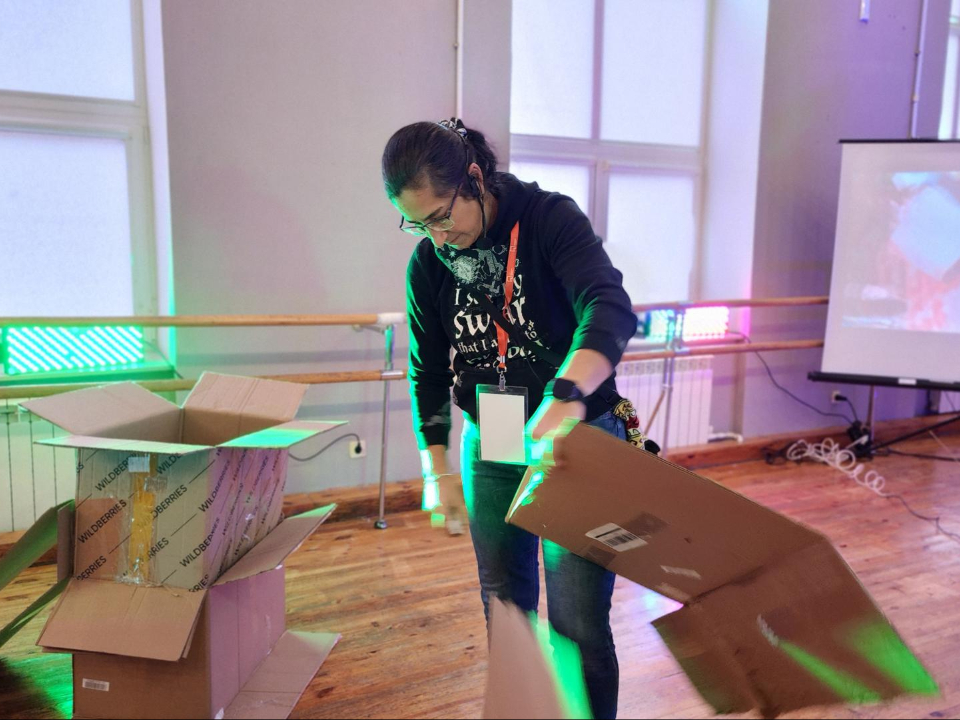 А в танцевальном зале художница столичного проекта «Картония» Дениза Юсифова организовала мастерскую, где участники попробовали себя в изготовлении декораций из картона.
