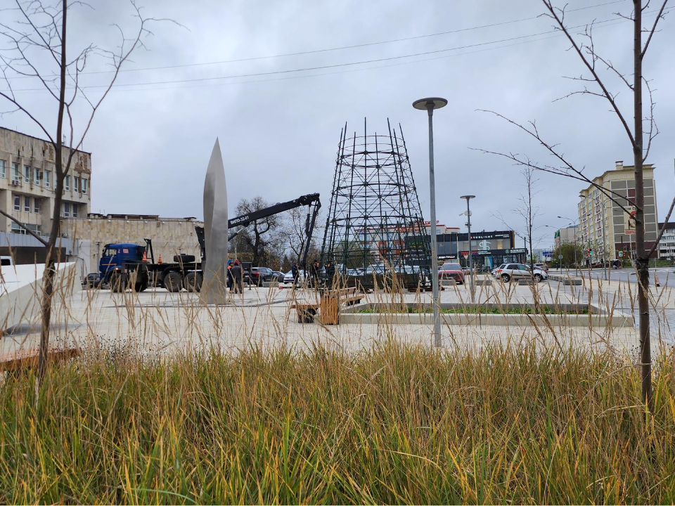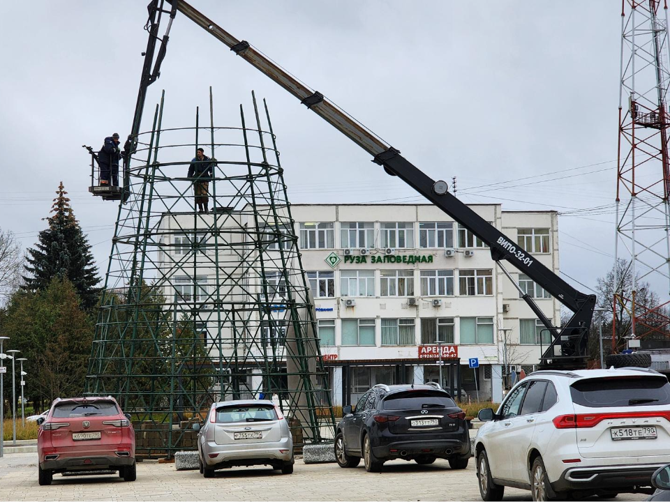 Сотрудники муниципальной службы «Благоустройства» 13 ноября начали устанавливать новогоднюю ель. Работы проходят на главной площади города, перед зданием администрации.