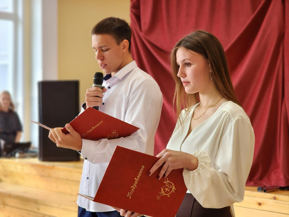 В ходе торжественной части директор школы Анастасия Уханова отметила, что 10% преподавательского состава — это бывшие ученики школы, которые вернулись делиться знаниями с новым поколением.