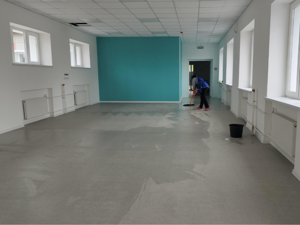 А вот на втором этаже учреждения уже организовали генеральную уборку, они приводят в порядок полы, окна и двери. В части кабинетов уже установили мебель.