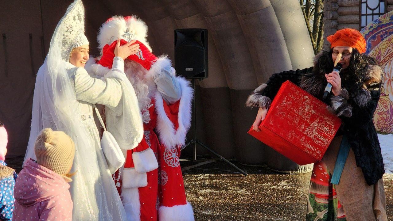 Гостей праздника встречали любимые персонажи — Снегурочка и Баба-Яга. Они создавали волшебную атмосферу с первых минут мероприятия, вовлекая всех присутствующих в праздничное действо.