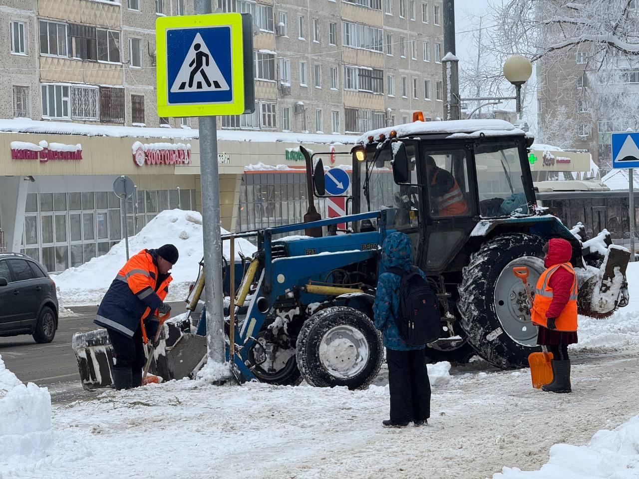 Представитель подрядной организации Денис Лелин уточнил, что тракторы, самосвалы и дворники оперативно убирают снег у остановок и на обочинах.