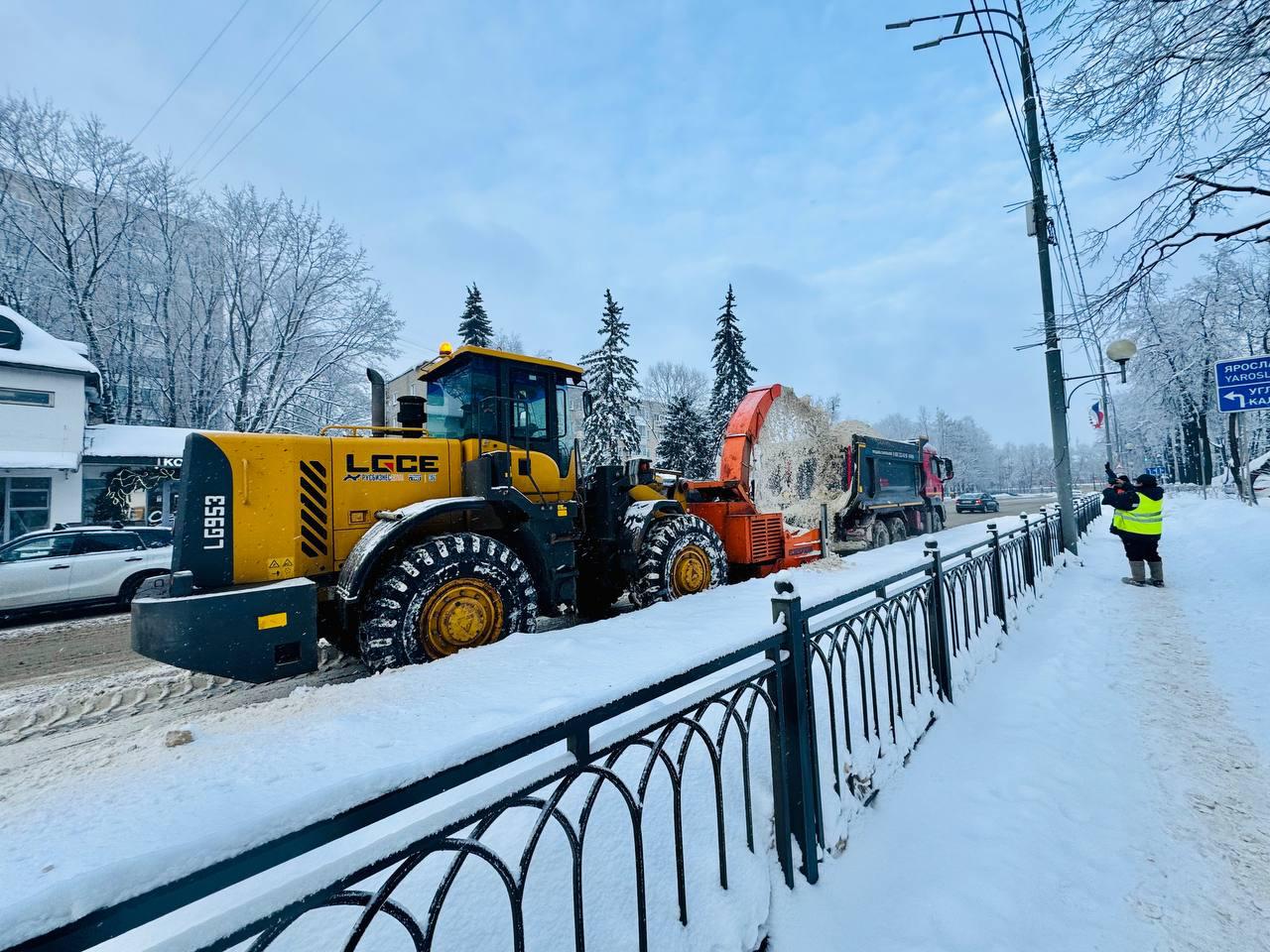 Подрядная организация «Сергиево-Посадское ДРСУ» сосредоточила усилия на проспекте Красной Армии, очищая обочины. В работе задействовано 6 единиц техники: снегоуборочный ротор, погрузчик, три самосвала и комбинированная дорожная машина.