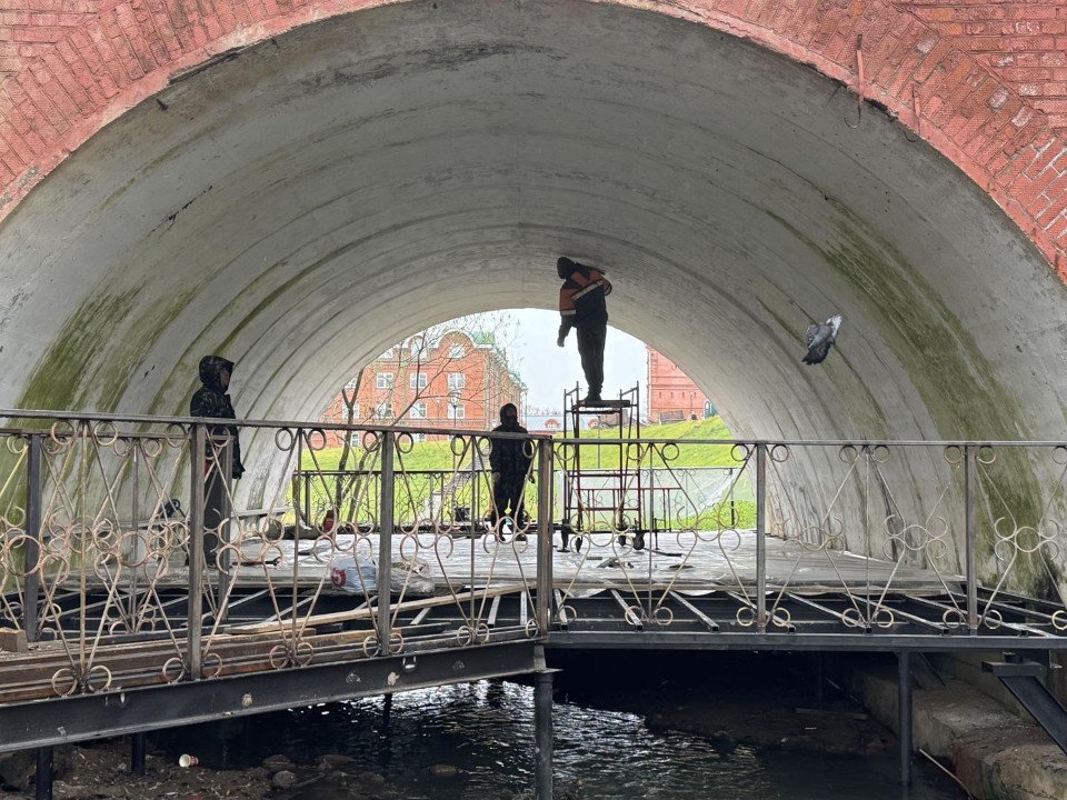 Сейчас рабочие монтируют настил под мостом и готовятся ремонтировать лестницу, ведущую к воде. По словам замаглавы администрации округа Романа Сусанина, в планах – укрепить склоны оврага, сделать удобные спуски, проложить новые дорожки и установить освещение.