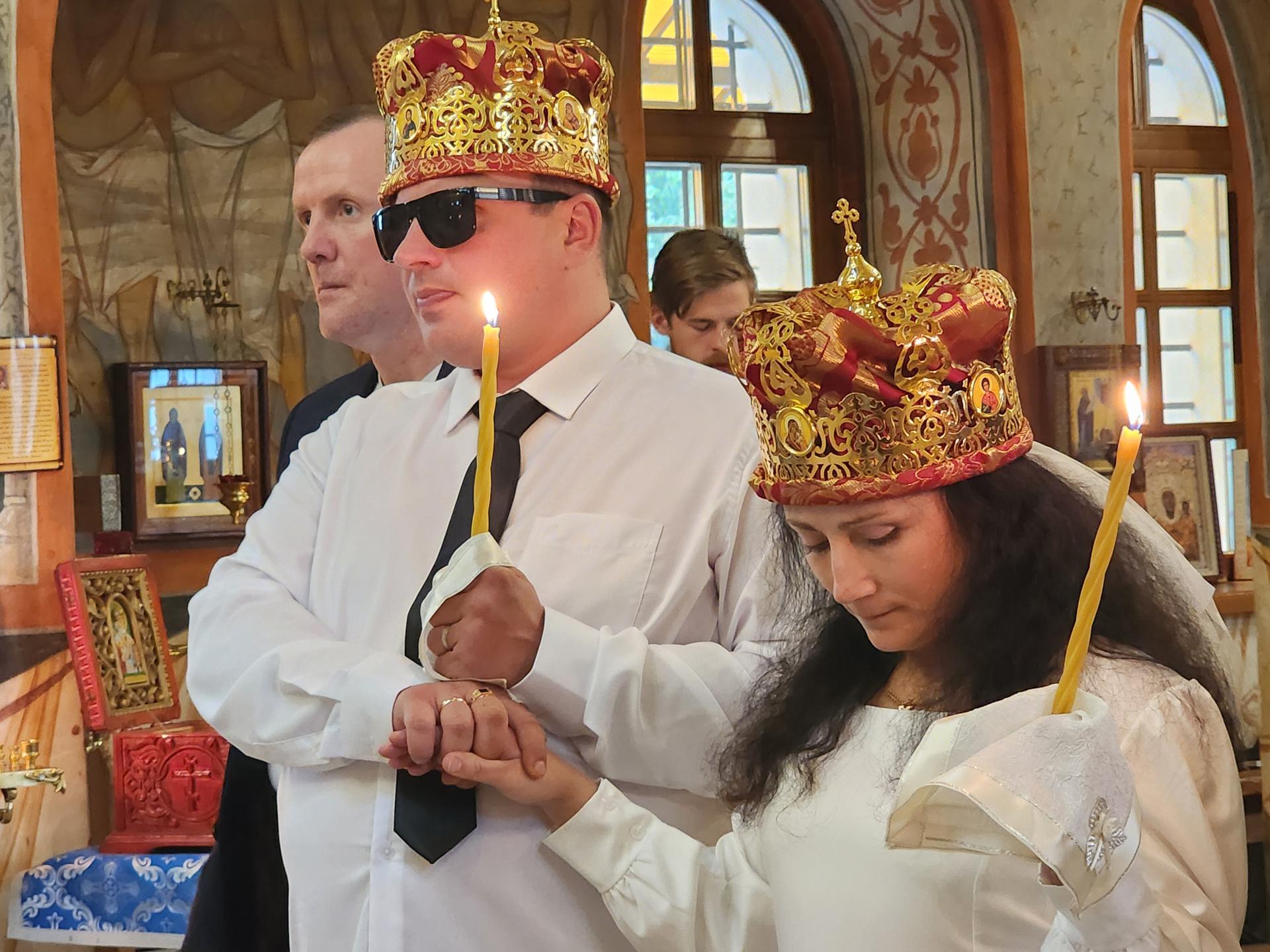Венчание провели в храме, который работает при Центре реабилитации имени Мещерякова. Именно здесь встретили друг друга влюбленные, приехав с целью восстановления здоровья и переобучения.
