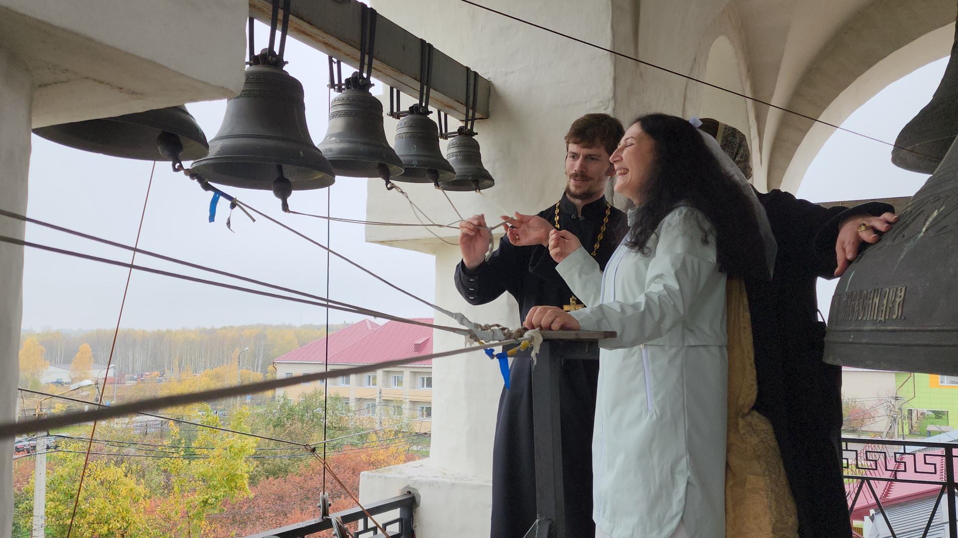 После церемонии молодые супруги, следуя традиции, поднялись на колокольню и позвонили в колокола. Поздравили молодоженов их друзья и товарищи по центру. Для многих из них он стал вторым домом, местом поддержки и понимания.