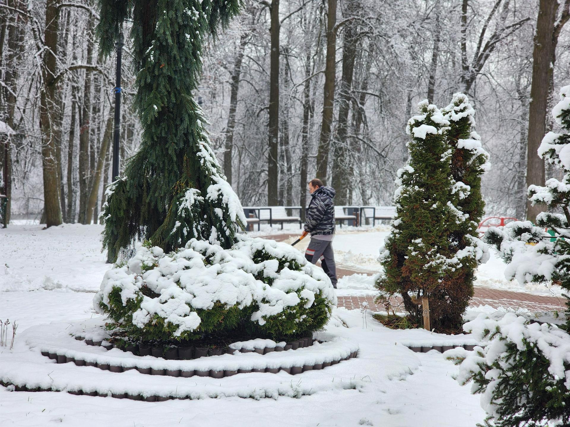 Центральный парк подмосковного Сергиева Посада готовится к открытию зимнего сезона. Здесь уже установили елку, а первый снег придал парку по-настоящему зимний антураж.