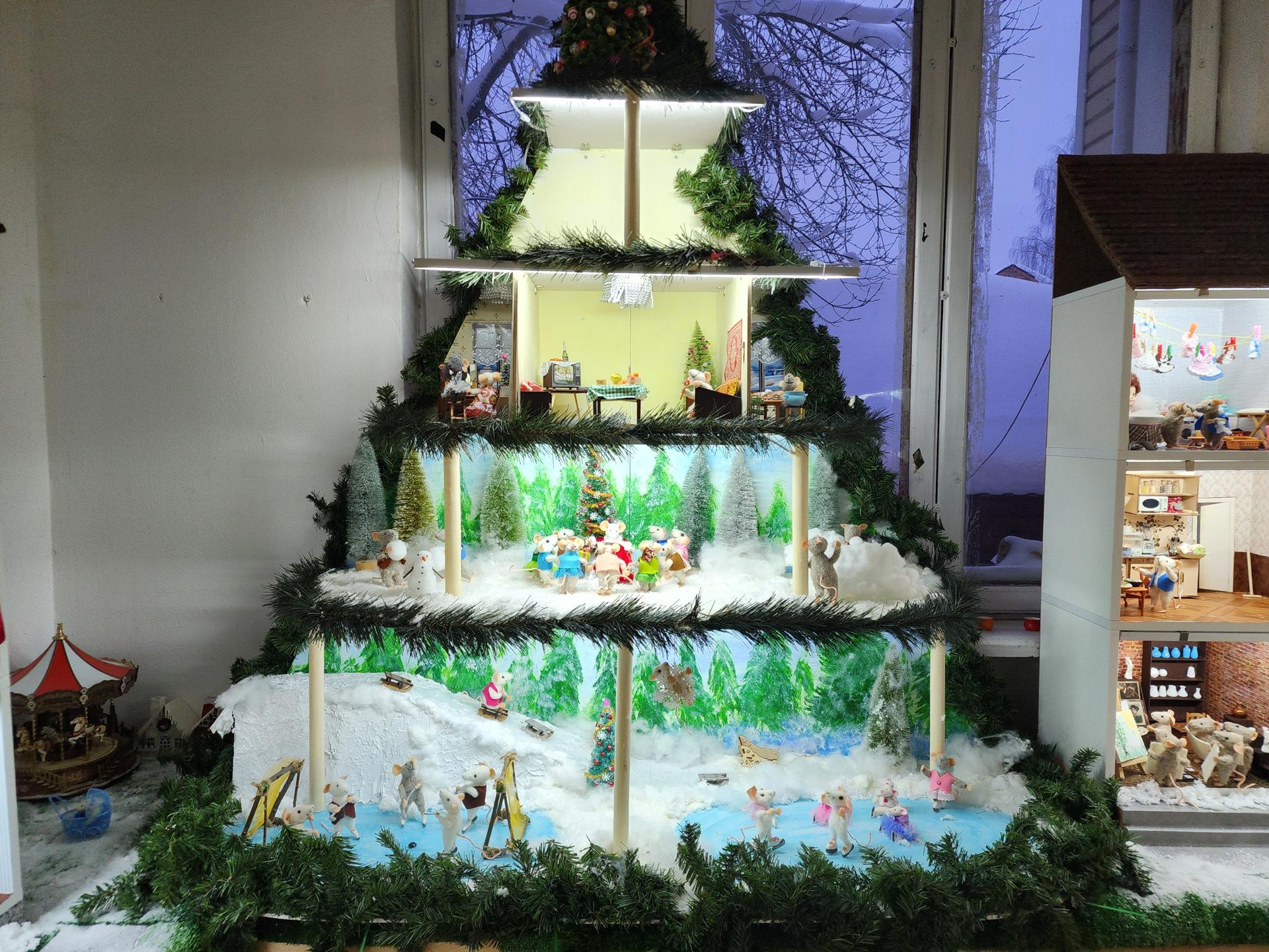 Подготовка к открытию заняла семь лет. Сегодня это целый ансамбль сценок из советской эпохи: вот квартира, а вот школа, почта, магазин, театр и другие локации. Каждая мышка и 90 процентов всех предметов — от мебели до мелочей — изготовлены авторами вручную из полимерной глины, эпоксидной смолы и подручных материалов.