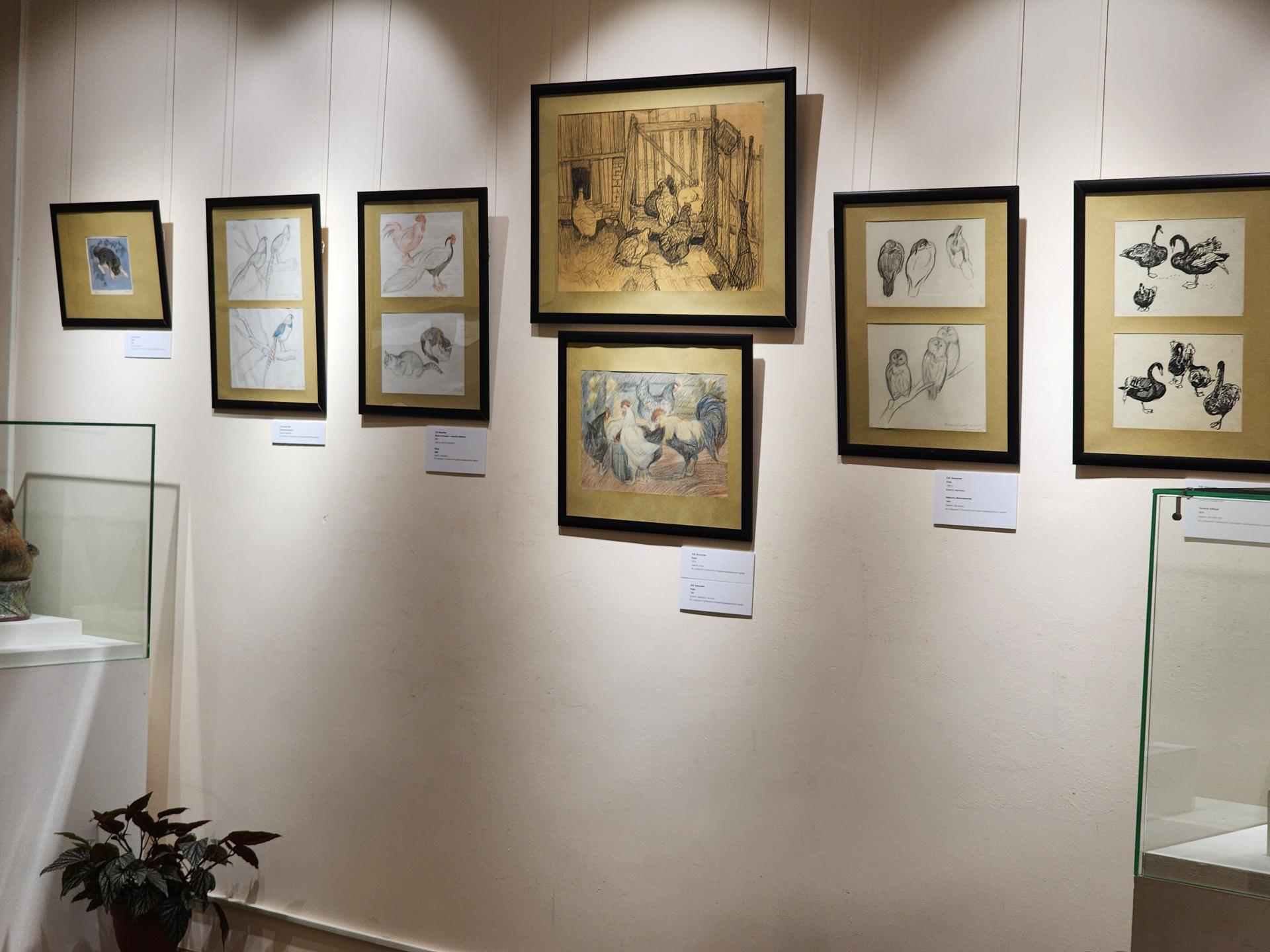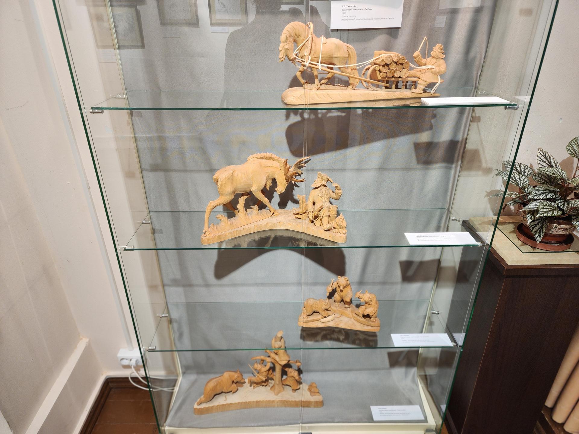 В Ступинском музее собрана одна из самых больших коллекций анималистической графики. На этой выставке можно увидеть 89 работ трех авторов. Их удачно дополняют изделия богородской резьбы, абрамцевская резьба по кости, керамика, гипсовые панно из коллекции Абрамцевского музея и частных коллекций.