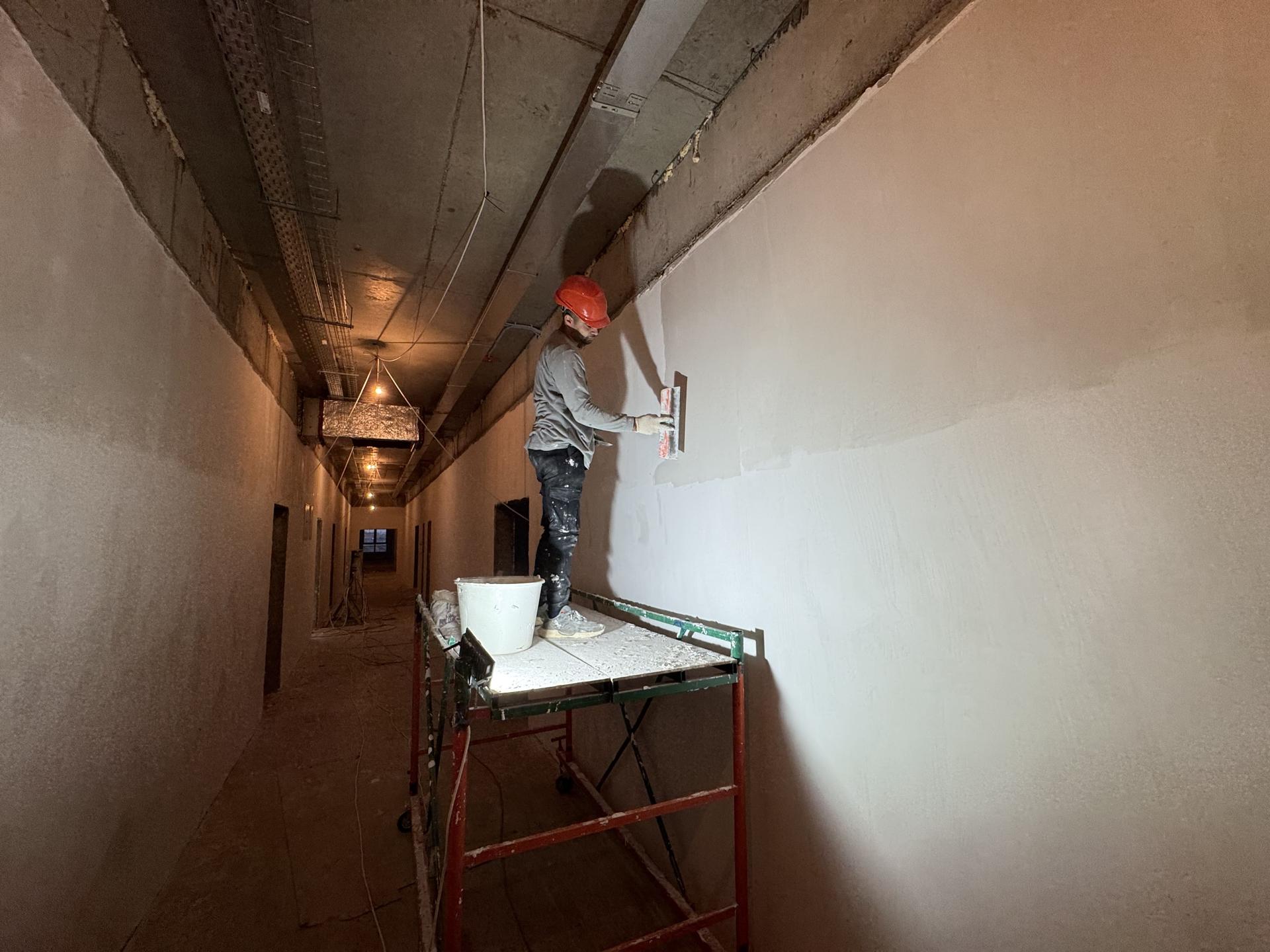Сейчас ведется подготовка к отделке помещений. Благоустройство территории запланировано на лето. На прилегающей территории появятся игровые площадки с теневыми навесами.