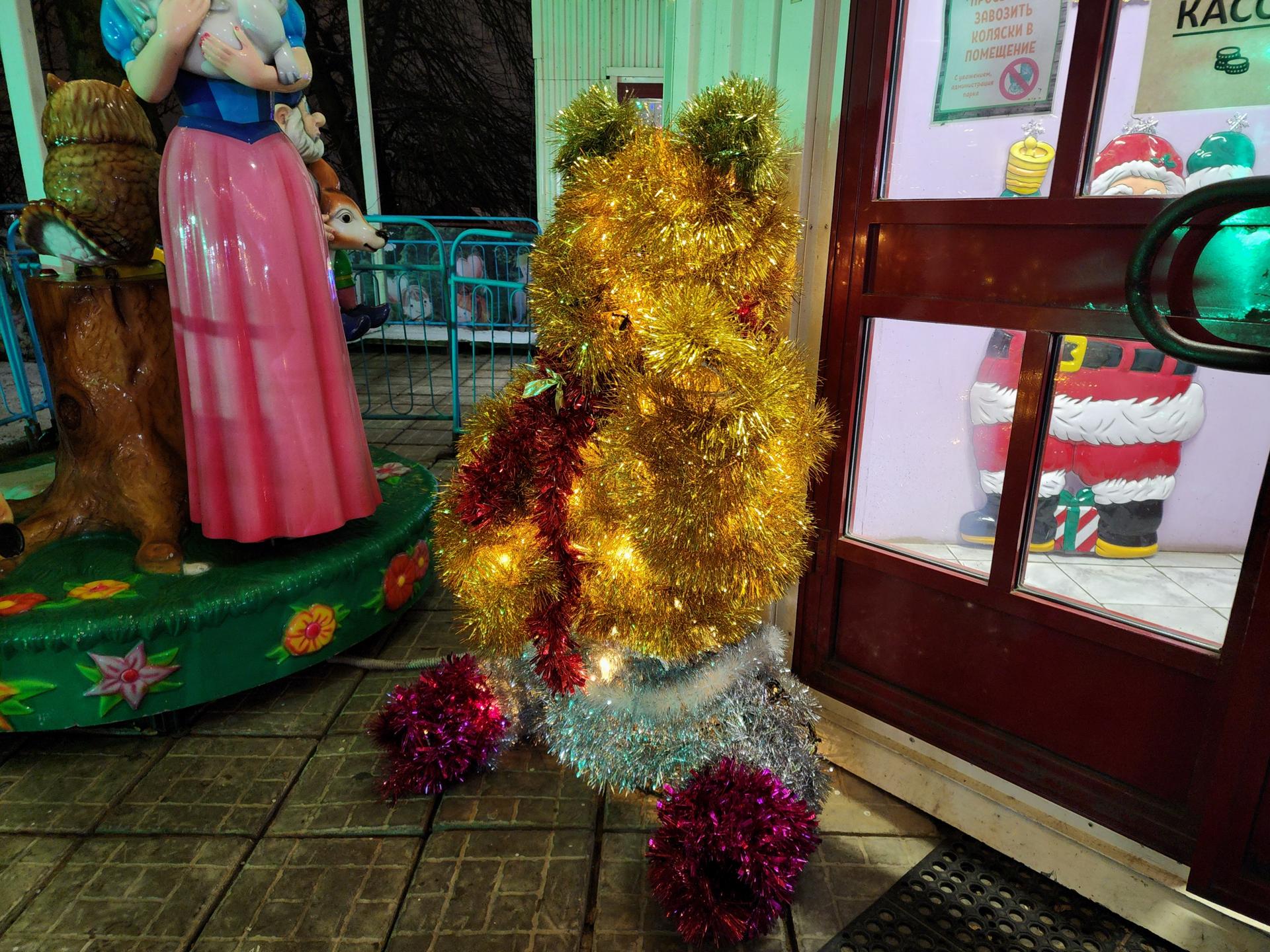 Парк чудес нарядили к зиме. Уже с самого входа гостей встречает море ярких, праздничных огней, которые создают по-настоящему волшебную атмосферу. На сцене у пруда возвышается пушистая елка. Изысканной иллюминацией украшены не только аттракционы, но и пруд.