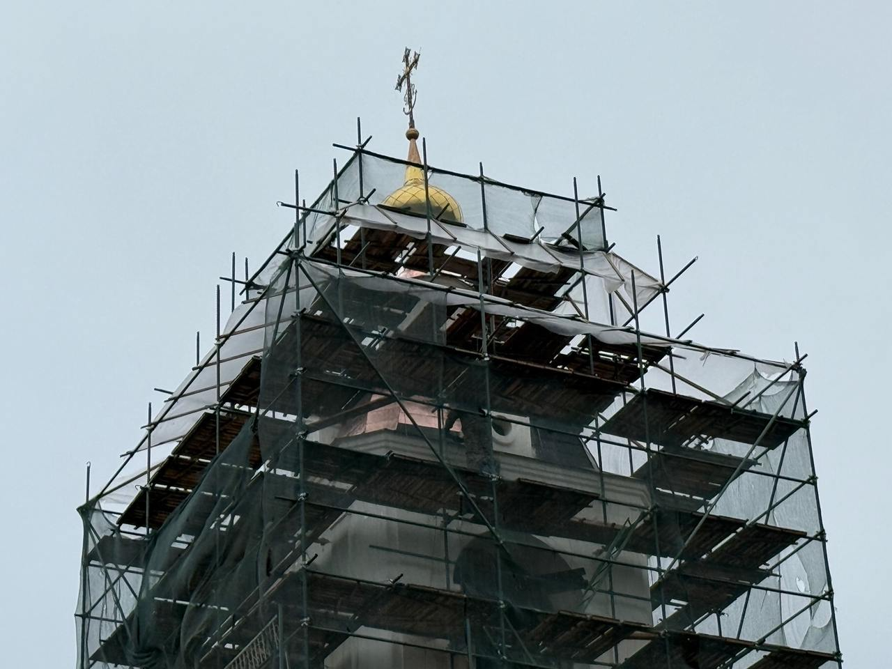 Сейчас специалисты занимаются штукатуркой фасадов, установили новые купола, подготовили три уникальные наружные мозаики ручной работы. Постепенно начинаются и кровельные работы.