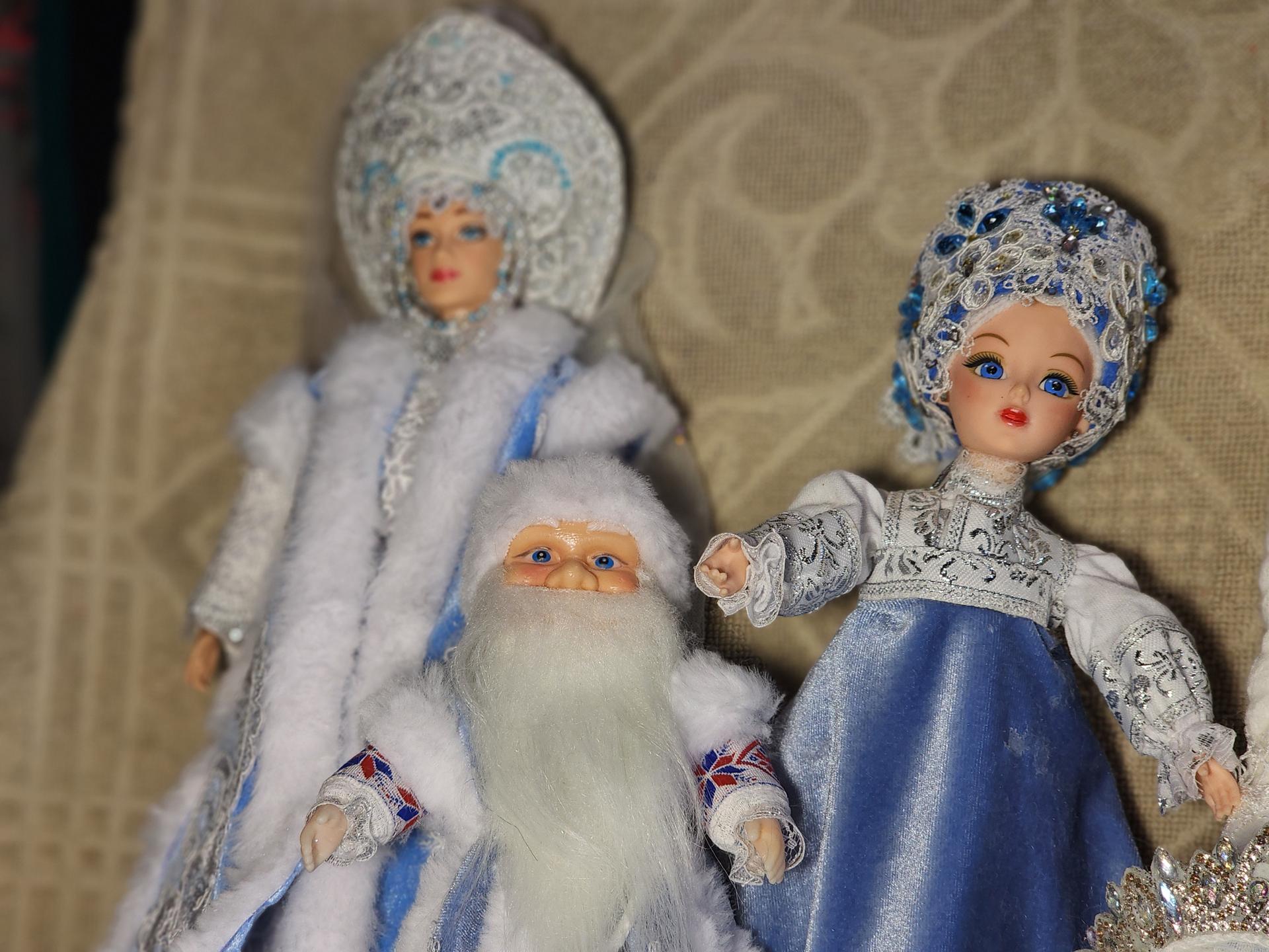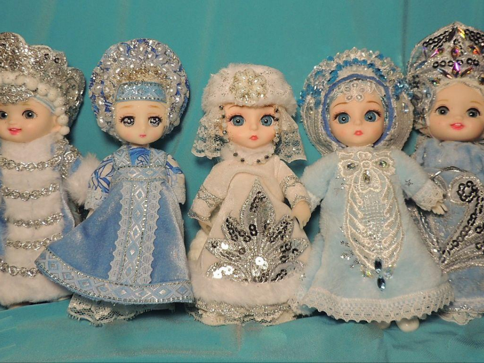 В подмосковном Сергиевом Посаде известная в городе мастерица подготовила новогоднюю коллекцию кукольных Снегурочек в разных нарядах и в паре с кукольным Дедом Морозом. Такие сувениры подойдут для убранства елки и новогоднего интерьера. Их можно подарить близким или друзьям.