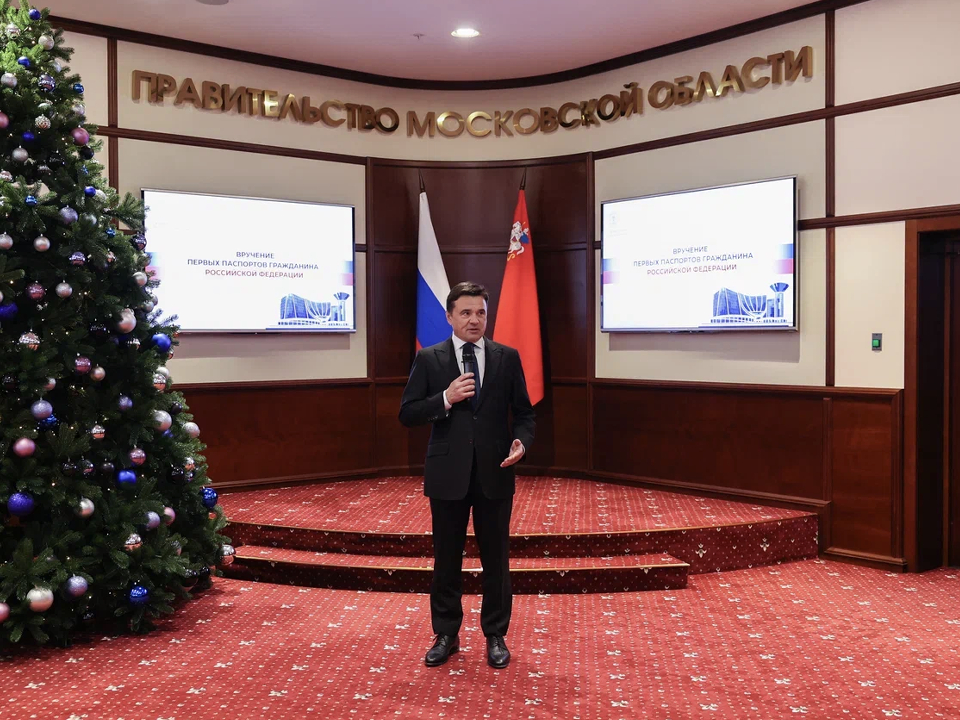 Губернатор Подмосковья Андрей Воробьев вручил первые паспорта гражданина Российской Федерации молодым жителям региона в Доме правительства Московской области. Из рук главы региона документ получила жительница из Сергиева Посада, передает пресс-служба правительства региона.