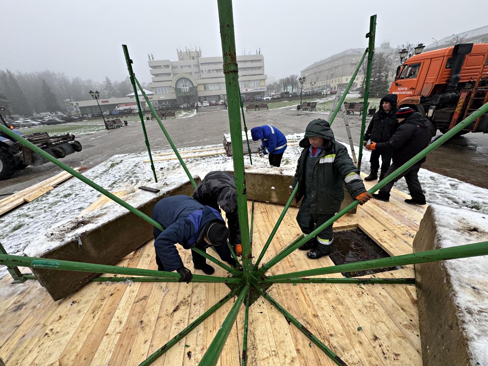 На центральной площади Сергиева Посада началась установка главной новогодней елки. Работы ведет МБУ «Благоустройство СП»: сначала расчистили площадь от снега и смонтировали прочное деревянное основание. Каркас укрепили бетонными блоками, чтобы конструкция выдержала любые капризы зимней погоды.