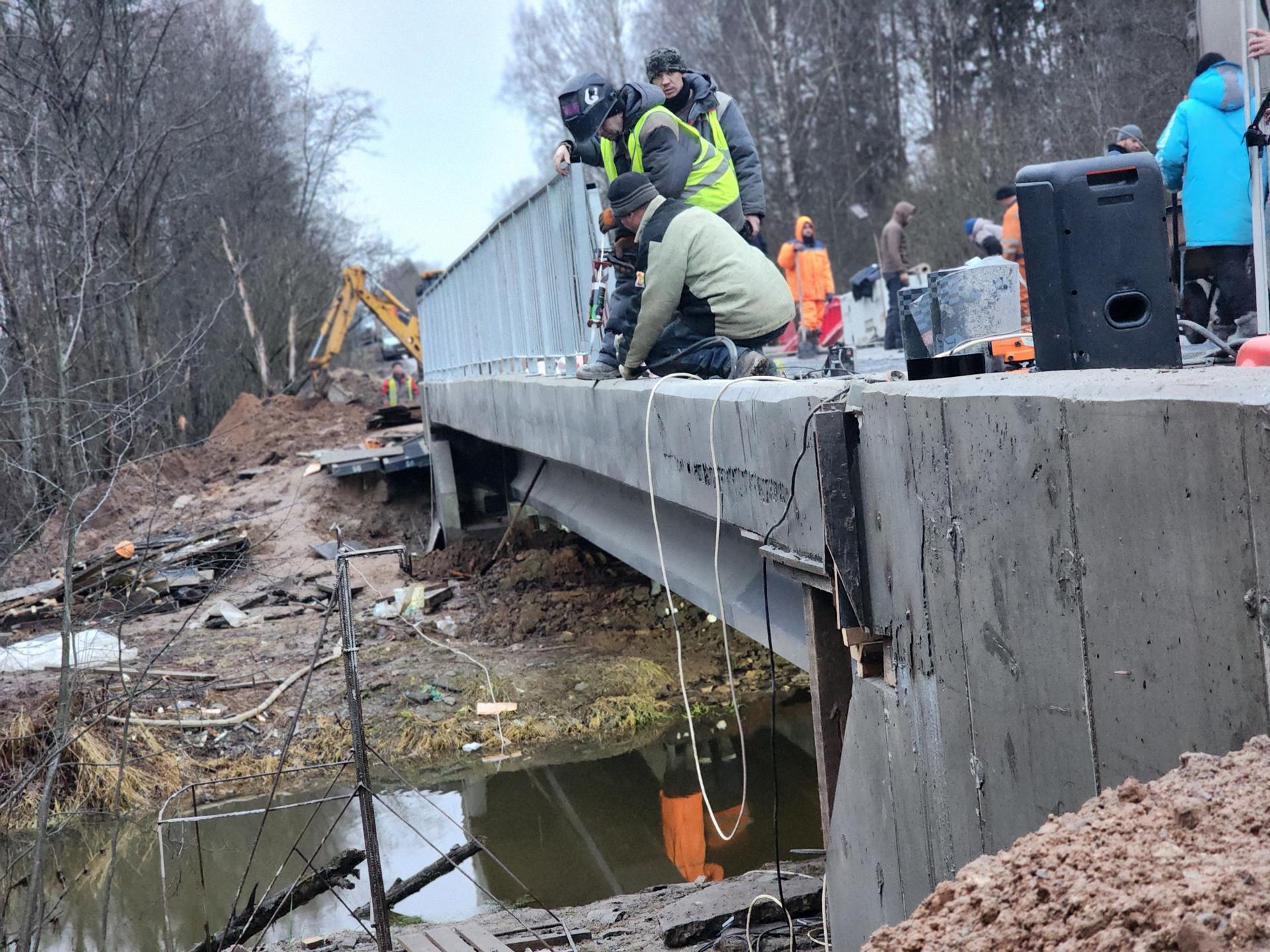 Параллельно для обеспечения безопасности дорожного движения выполняют монтаж перильного и барьерного ограждения. На объекте задействован 21 человек.