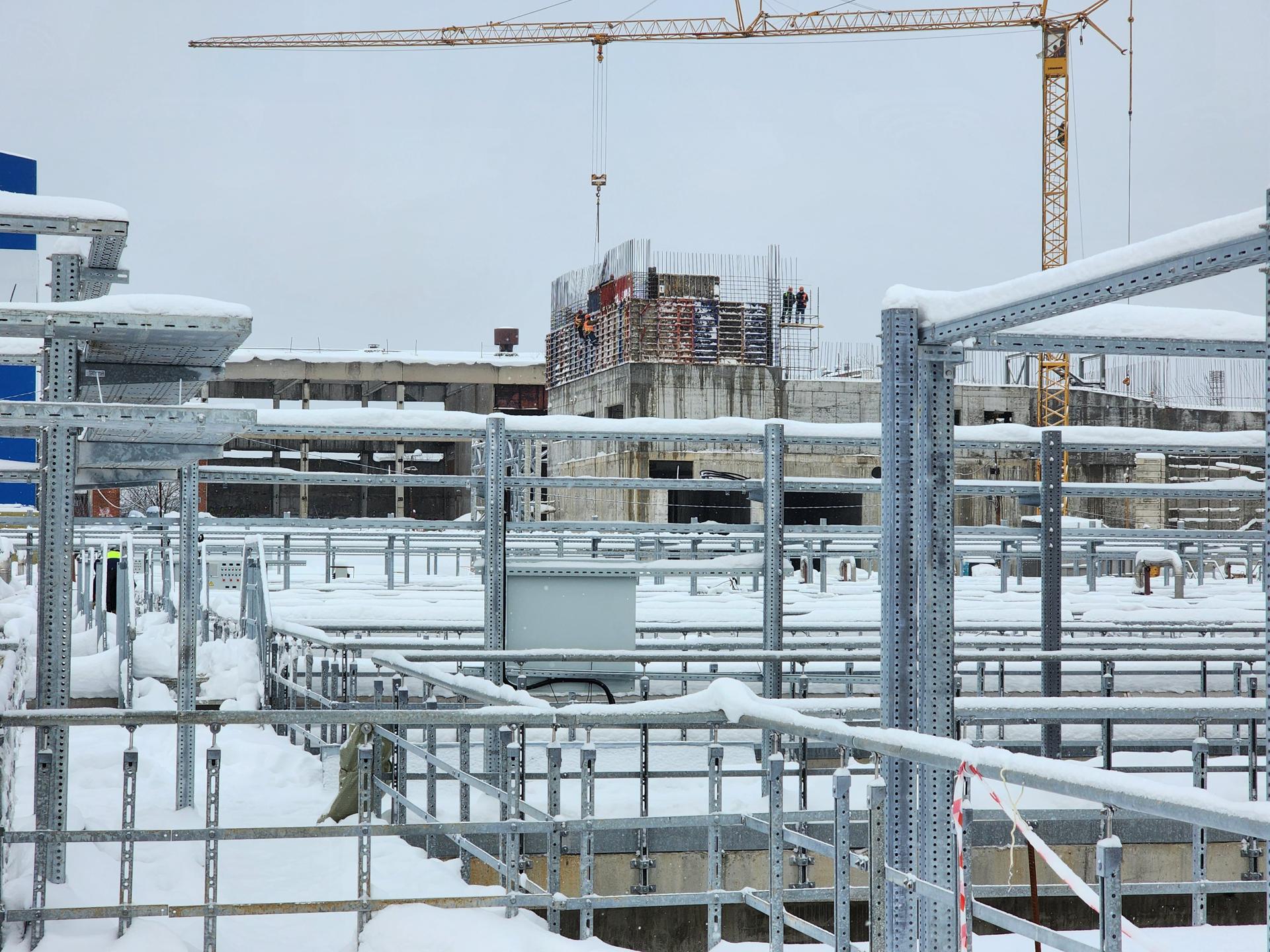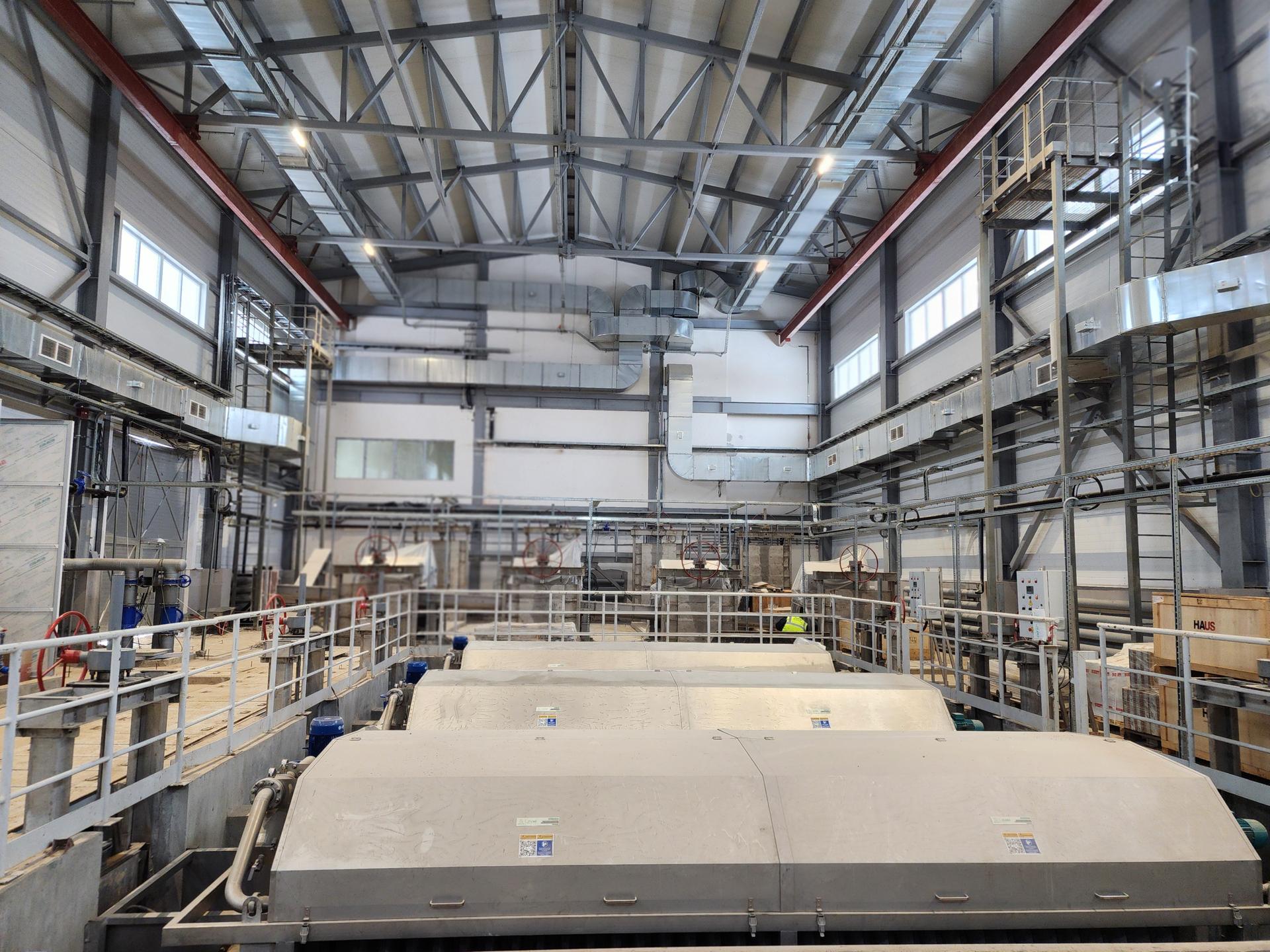 Сейчас проводятся монолитные работы в цехе обезвоживания и административно-бытовом корпусе с лабораторией, а также завершаются отделочные работы в остальных зданиях комплекса.