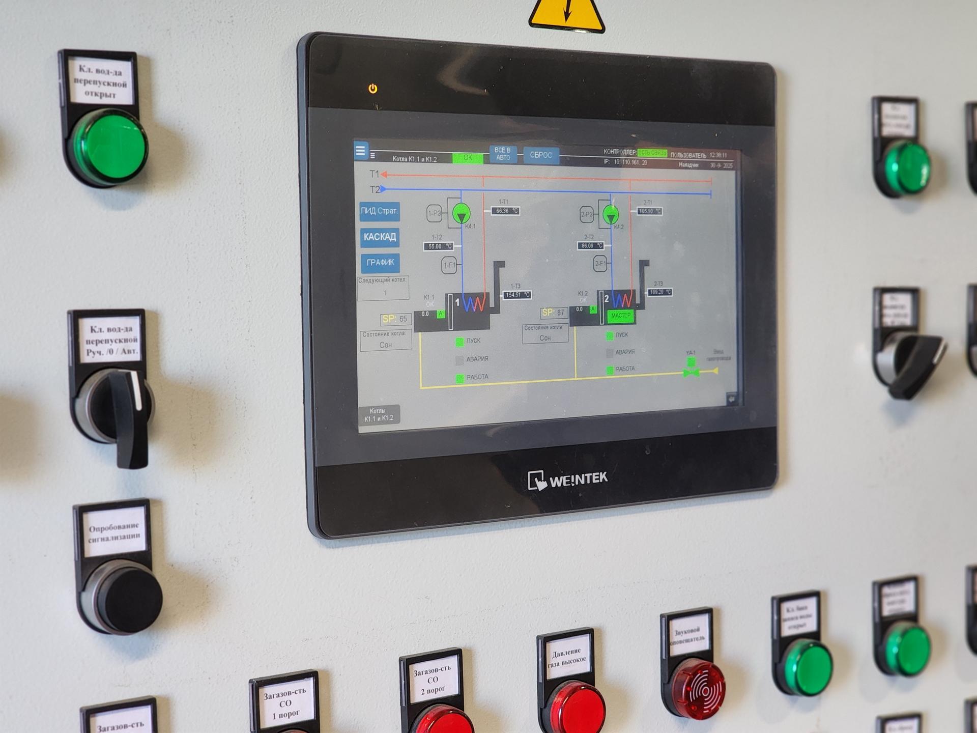 Котельная оснащена двумя котлами марки «Дорогобуж» суммарной мощностью 0,7 МВт (по 0,35 МВт каждый), что позволяет обеспечить теплом три малоэтажных дома.